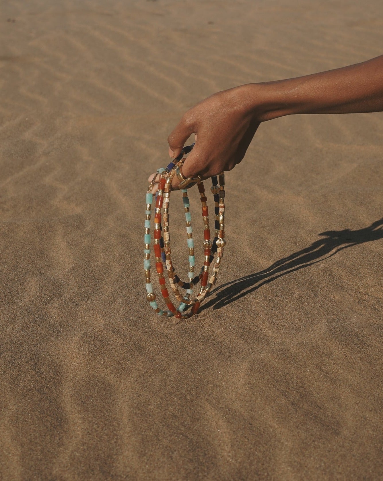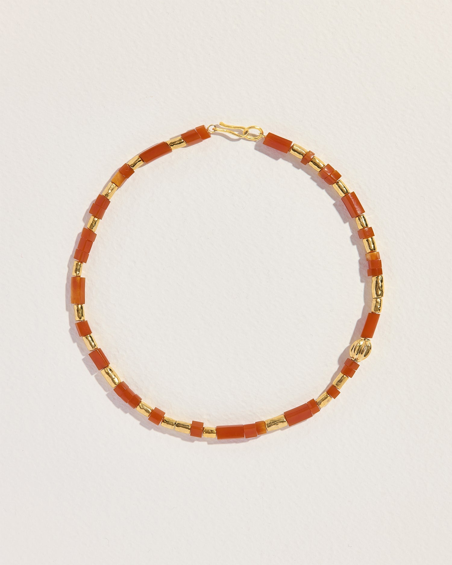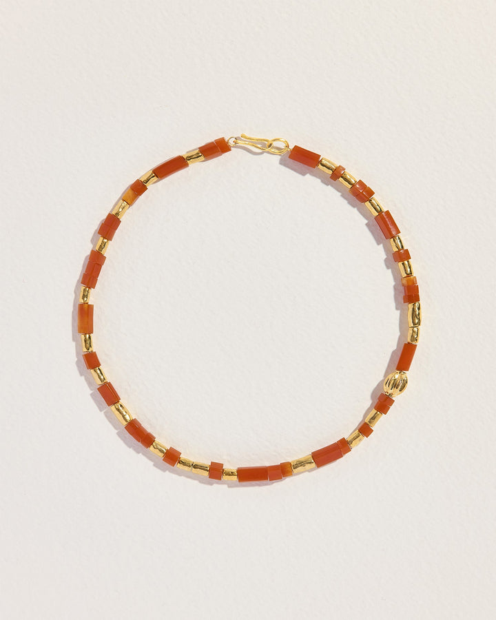 This Valentine Necklace by Pamela Love offers a playful yet sophisticated aesthetic with its fragmented pink coral barrel beads and warm gold-plated brass. Perfect for layering or wearing as a standalone statement.