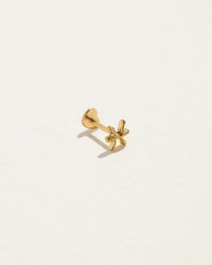 Handcrafted in 14k yellow gold. Features a threaded back post with a thickness of 1.2mm (16 gauge) and an internally threaded heart back closure.