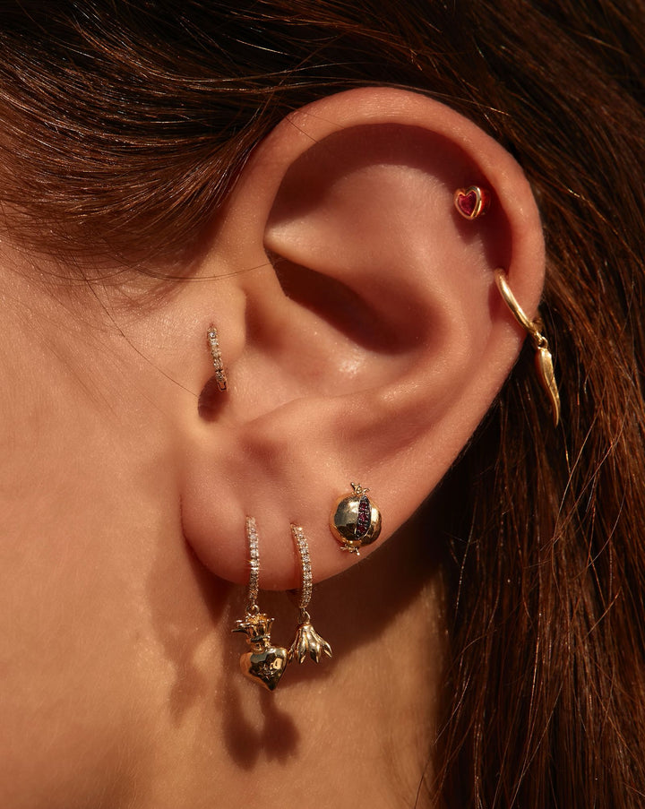 This Tiny Half Pavé Huggie by Pamela Love is a delicate yet dazzling addition to any ear stack. Featuring a row of pavé-set diamonds on half the hoop, this petite clicker adds subtle brilliance, whether worn solo or layered.
