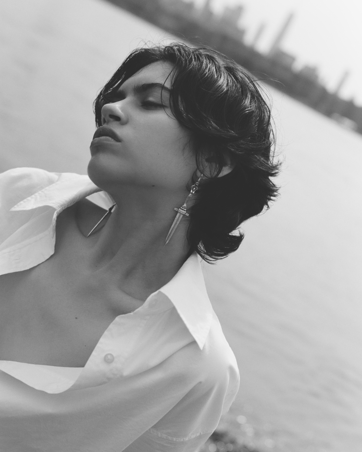 These Large Dagger Earrings by Pamela Love revive an iconic design, featuring sculptural dagger-shaped pendants that create a bold, striking silhouette. Suspended from hand-finished French hooks, these earrings make a fearless statement.