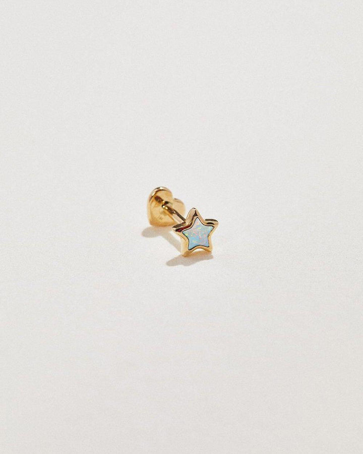 This Star Stud by Pamela Love is a celestial-inspired piece featuring a vibrant opal inlay. A minimal yet eye-catching option, perfect for helix, lobe, tragus, and upper lobe piercings.