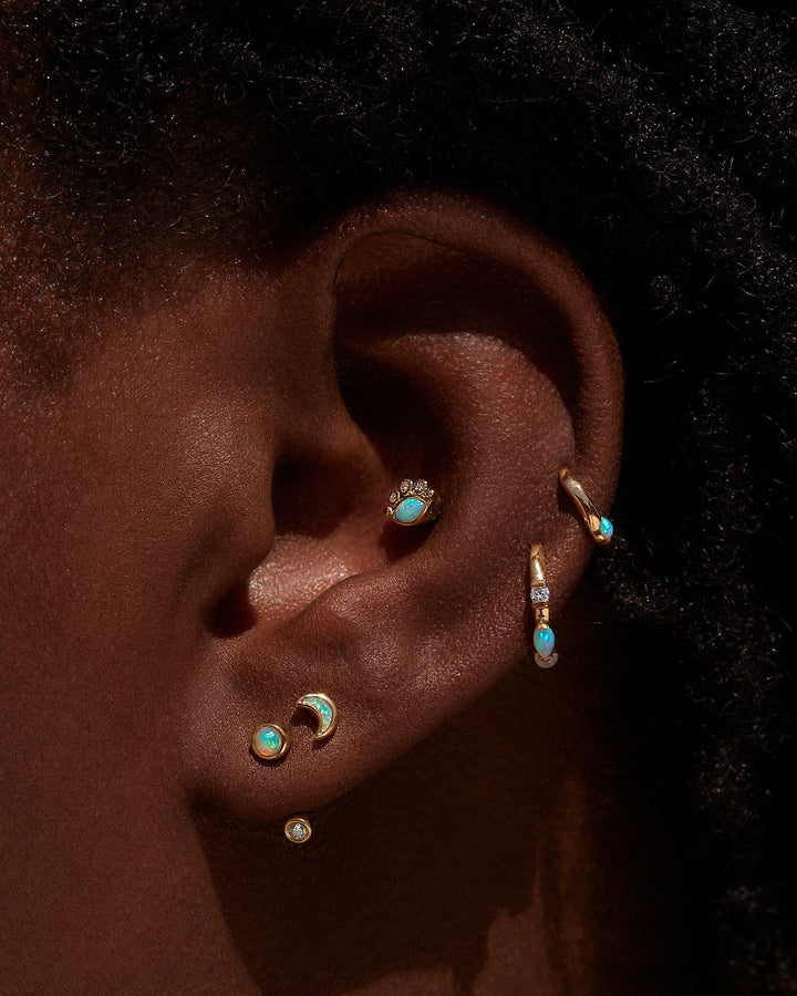 This Moon Stud by Pamela Love glows with ethereal beauty, featuring a dreamy Gilson opal inlay. A delicate, celestial accent for helix, lobe, and tragus piercings.