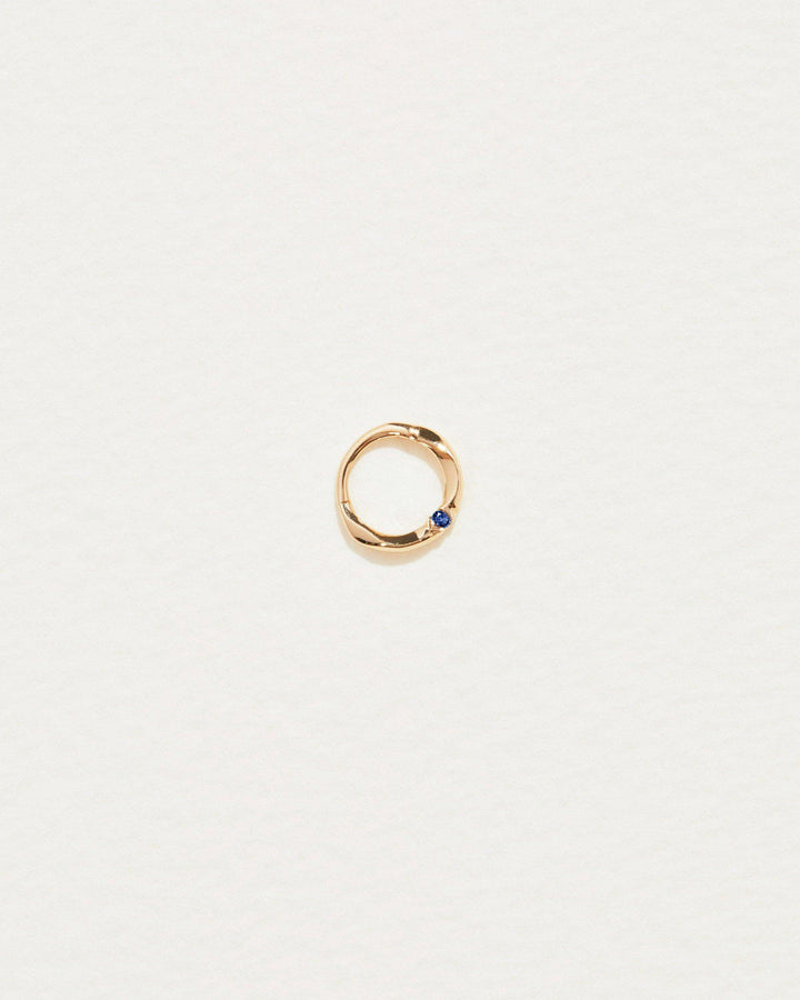 This 6mm Floating Stone Clicker by Pamela Love showcases a front-facing, floating sapphire set within an organic wavy hoop design. A timeless, versatile piece ideal for daith, septum, and lobe piercings.
