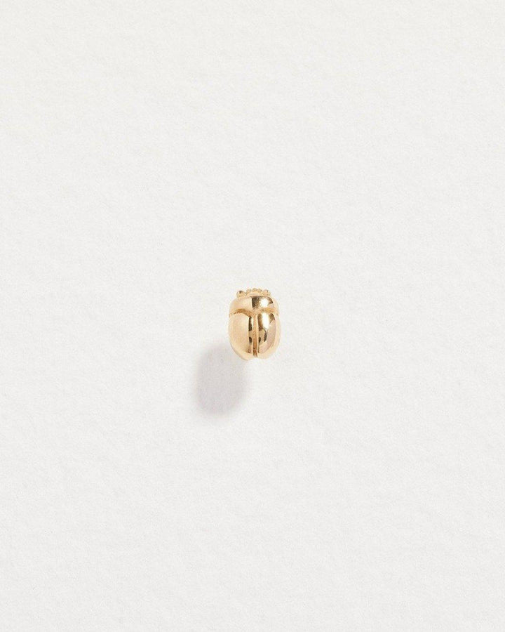 Handcrafted in 14k yellow gold. Scarab: 4 x 3.5mm. Threaded back post thickness: 1.2mm (16 gauge). Post length: 6.5mm. Internally threaded heart back closure. Sold as a single stud.