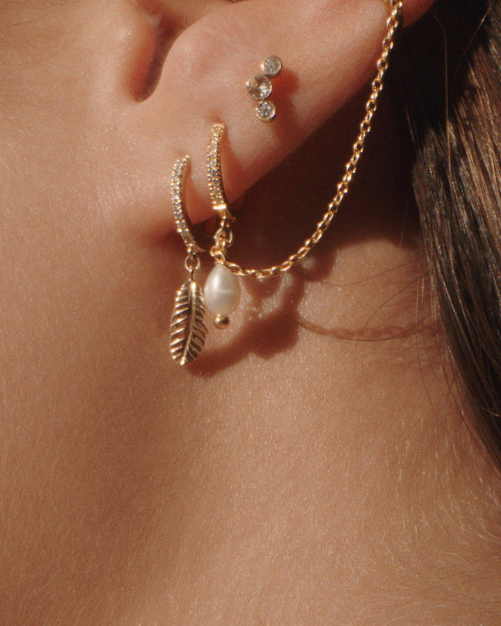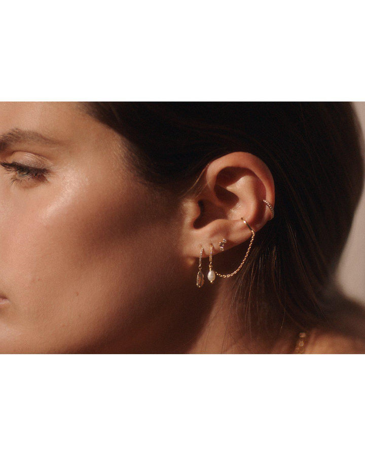 This Feather Pavé Huggie by Pamela Love, created in collaboration with model Sara Sampaio, features a delicate feather charm suspended from a diamond-encrusted huggie. Inspired by the ocean and the feeling of freedom it evokes, this piece embodies lightness and movement. Ideal for the rook, helix, and lobe piercings. A portion of proceeds from this collaboration supports Project LETS.