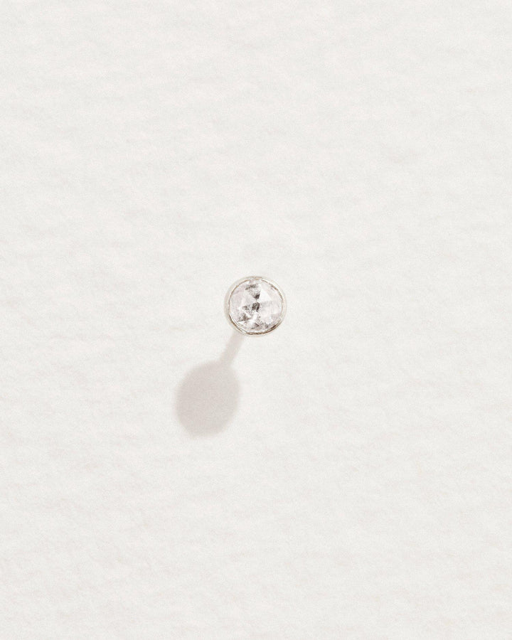 This Petite Stud by Pamela Love is a minimalist staple, featuring a bezel-set rose-cut diamond. A timeless and versatile piece ideal for helix, lobe, tragus, conch, and nose piercings.