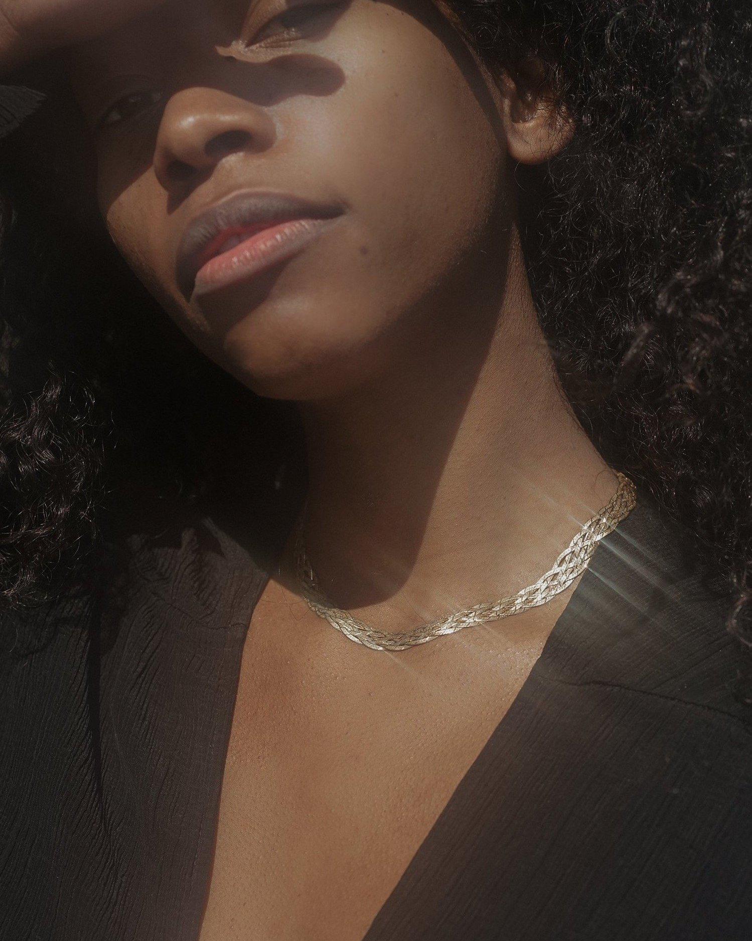 This Braided Herringbone Thick Chain by Pamela Love offers a bold, sculptural take on the classic herringbone design. Woven with precision for a fluid, elegant drape, this Italian-crafted necklace exudes sophistication. Designed for versatility, one side features a high-polish finish while the other has a subtle matte texture, allowing for multiple styling options.