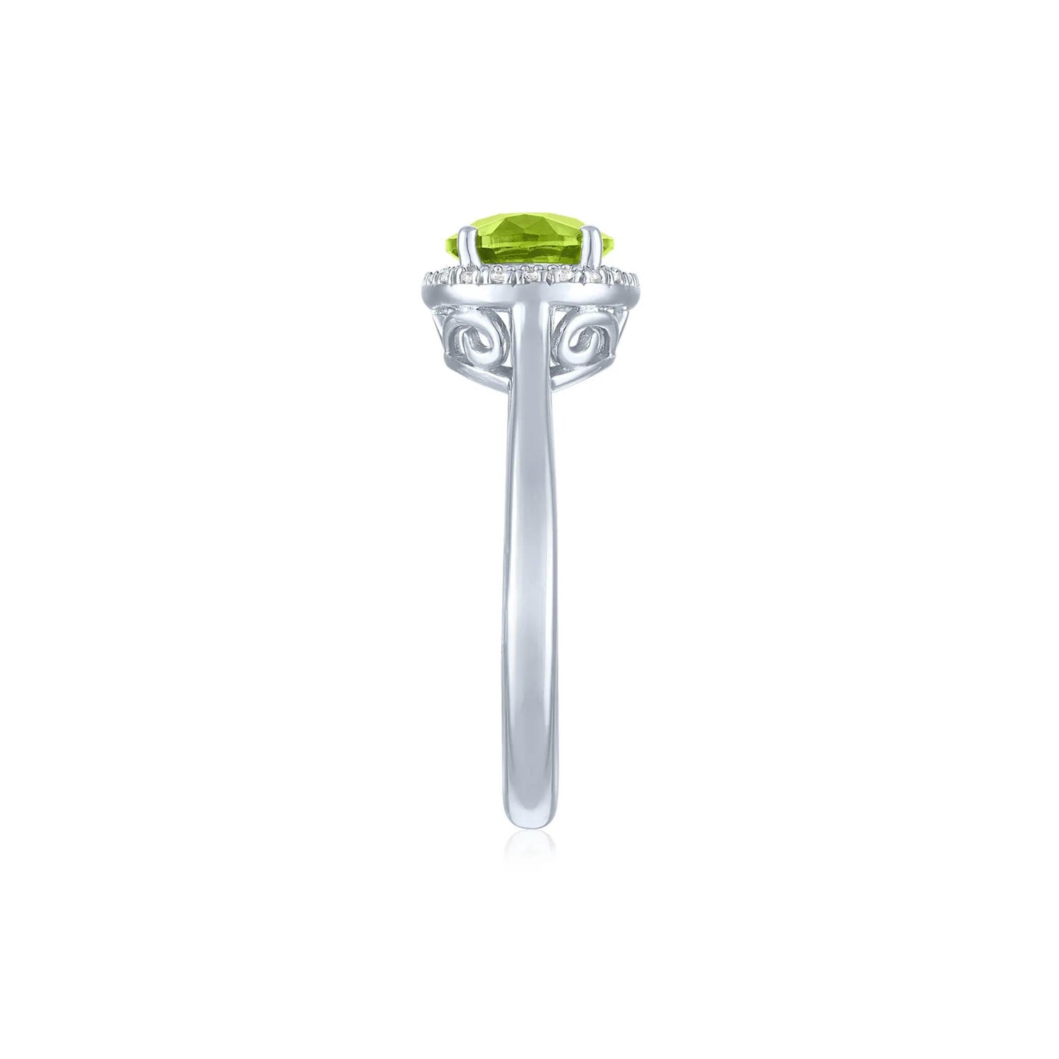 Peridot and Diamond Accent Halo Ring .925 Sterling Silver White Size 7.5 1mm