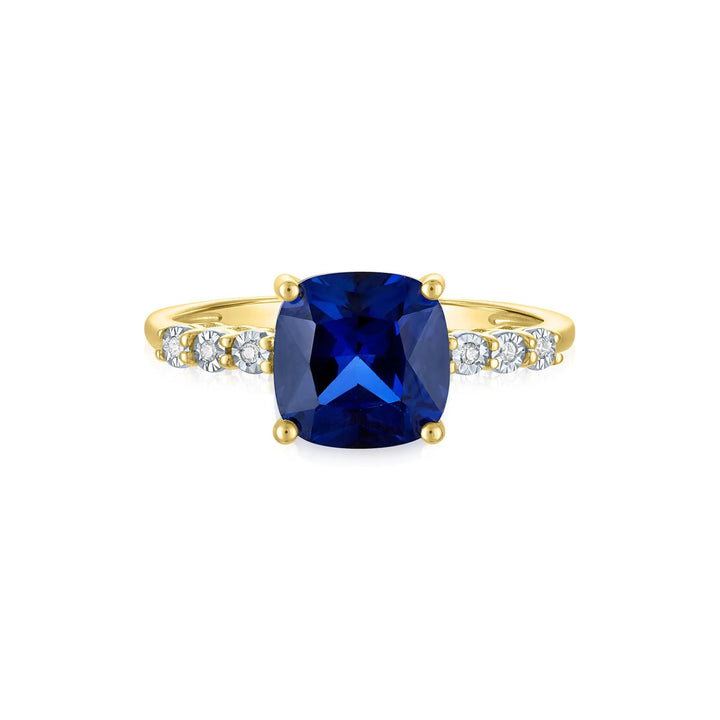 Lab-Created Blue Sapphire and Diamond Accent Ring 10K Yellow Gold Size 8.5 1mm