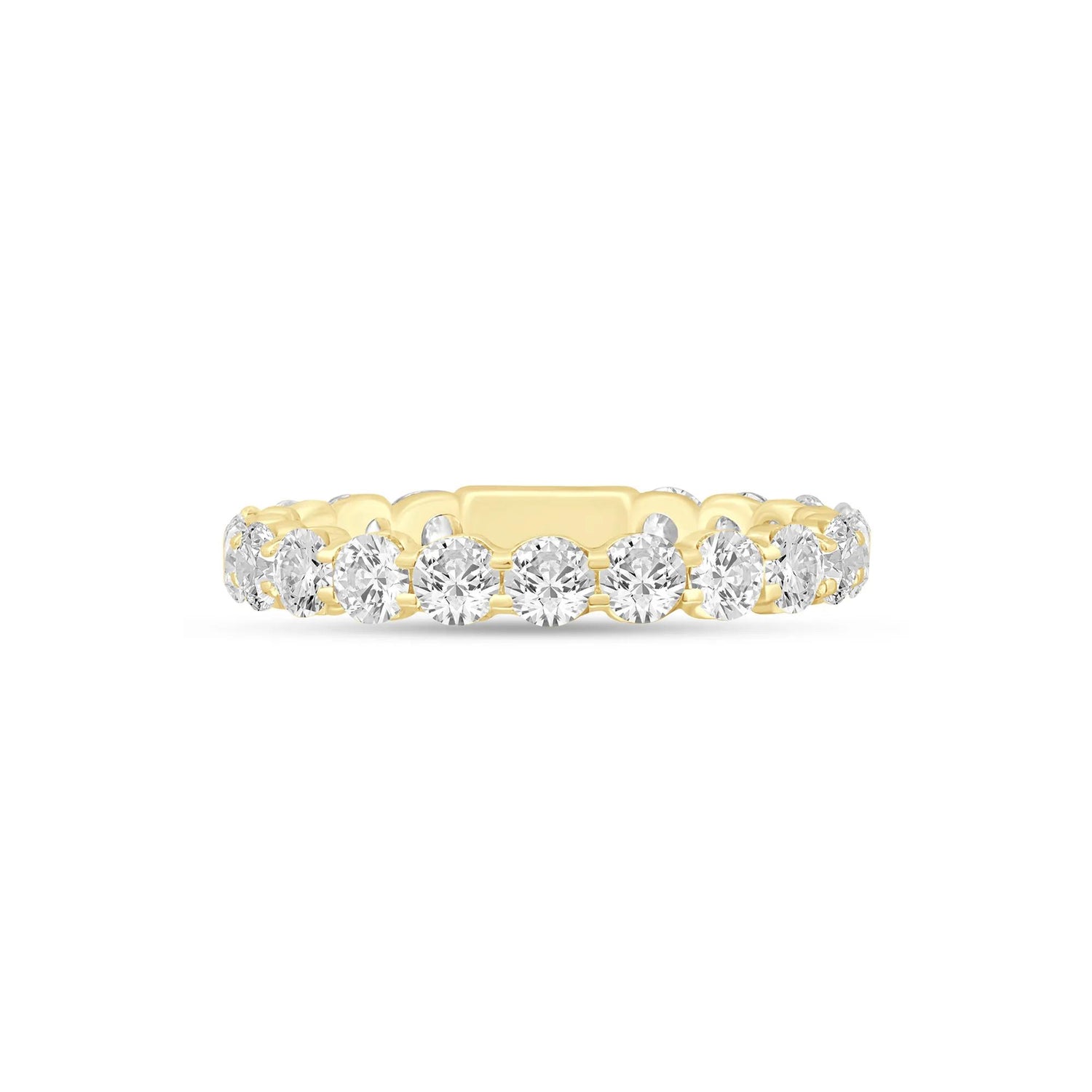Handcrafted in 14K yellow gold, this 2mm ring features 19 round-cut lab grown diamonds totaling 2 ct. tw., size 5.5.
