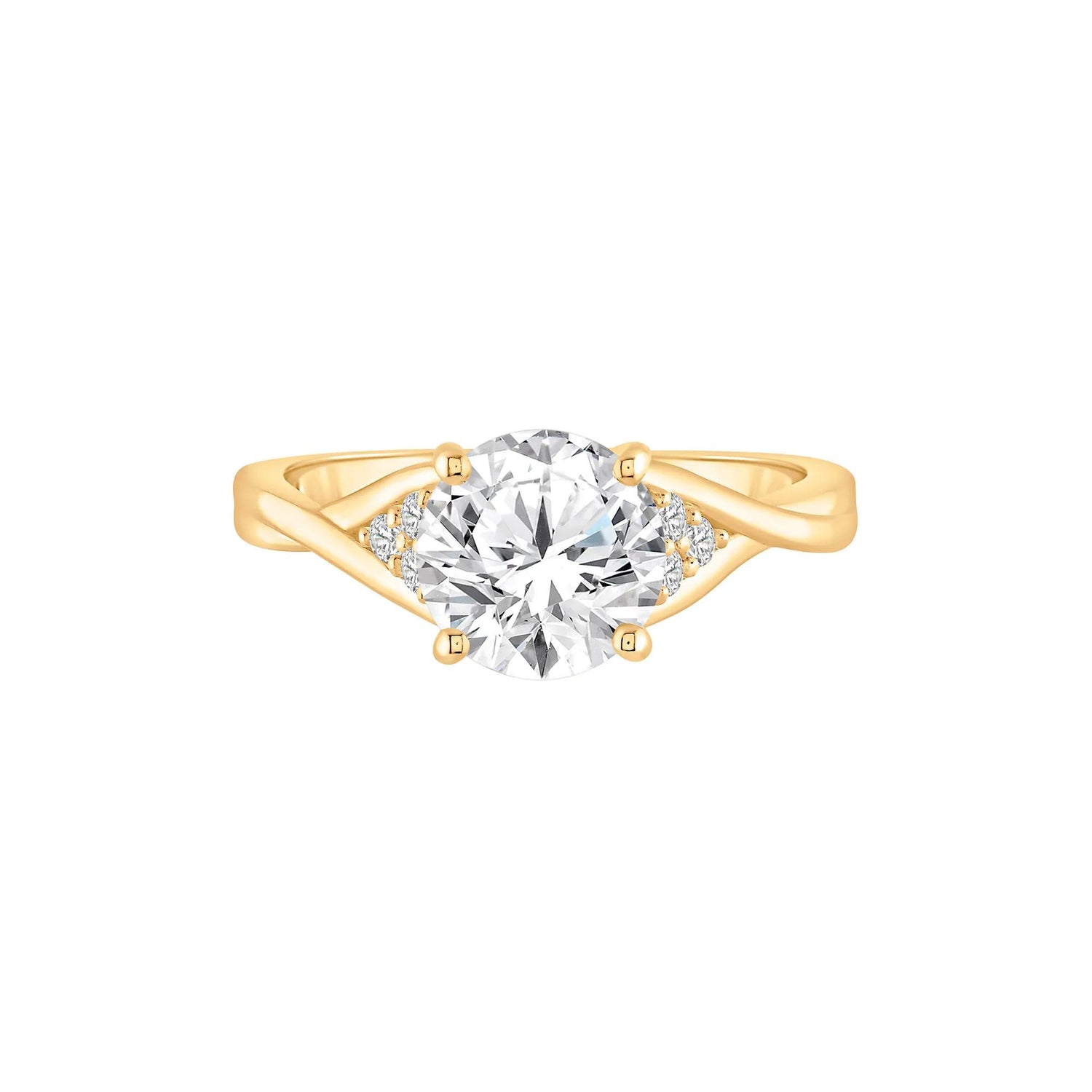 This 14K yellow gold ring features a 2-ct. GCAL-certified round brilliant-cut lab grown center diamond and 6 accent diamonds (2 ct. tw.) in size 7.5.