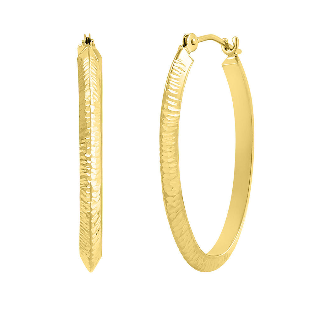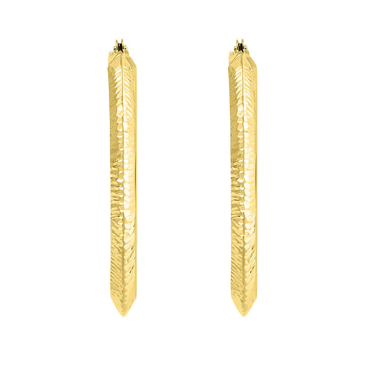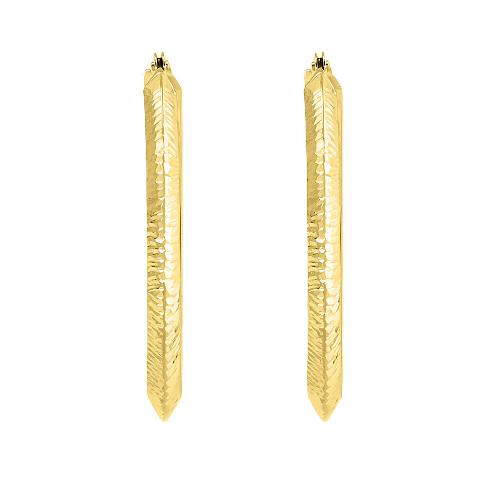 These Hoop Earrings by Helzberg in 14K yellow gold showcase a bold yet classic 2x45mm tube design. Their polished finish captures light effortlessly, offering versatile elegance perfect for casual wear or dressing up. A timeless staple, these hoops add sophistication to any jewelry collection.