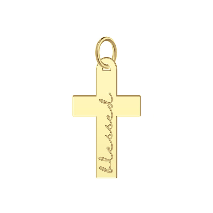 This Cross Charm in 10K Yellow Gold by Helzberg carries a meaningful “blessed” engraving, blending faith and elegance in a petite design that complements any charm collection.