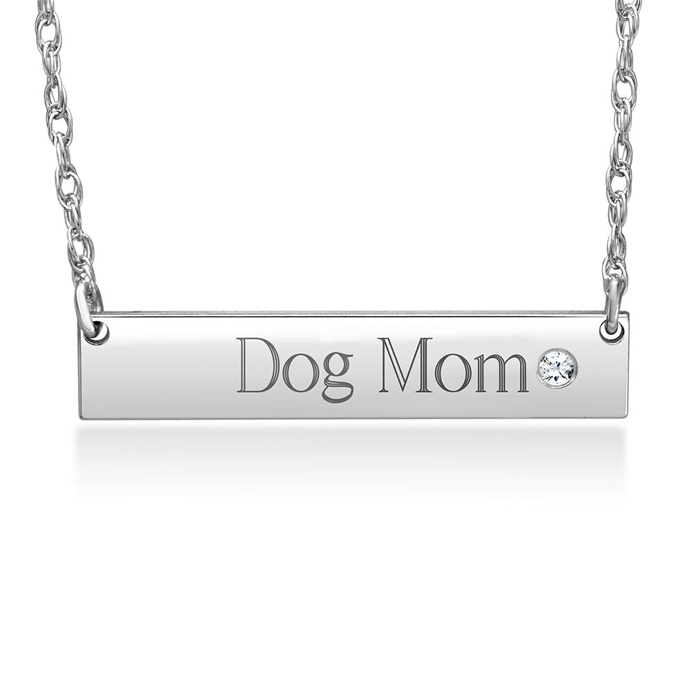 Engraved Bar Necklace with Diamond Accent in 10K White Gold