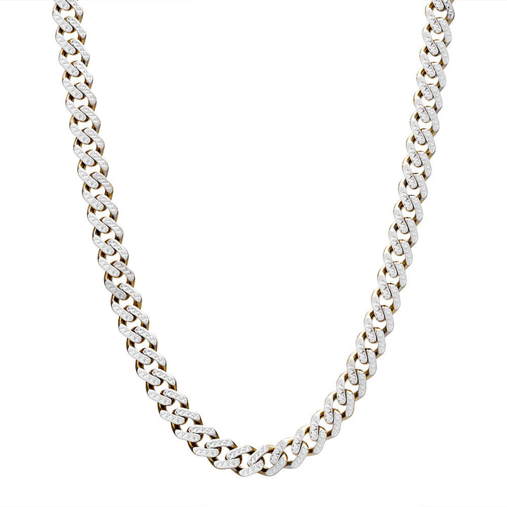 This Diamond-Cut Miami Cuban Chain by Helzberg is a bold statement of luxury and craftsmanship. Made from 14K yellow gold, the 6mm-wide chain features white diamond-cut metal enhanced with white rhodium plating, providing exceptional brilliance and durability. At 22 inches long, this iconic chain is perfect for layering or standalone wear.