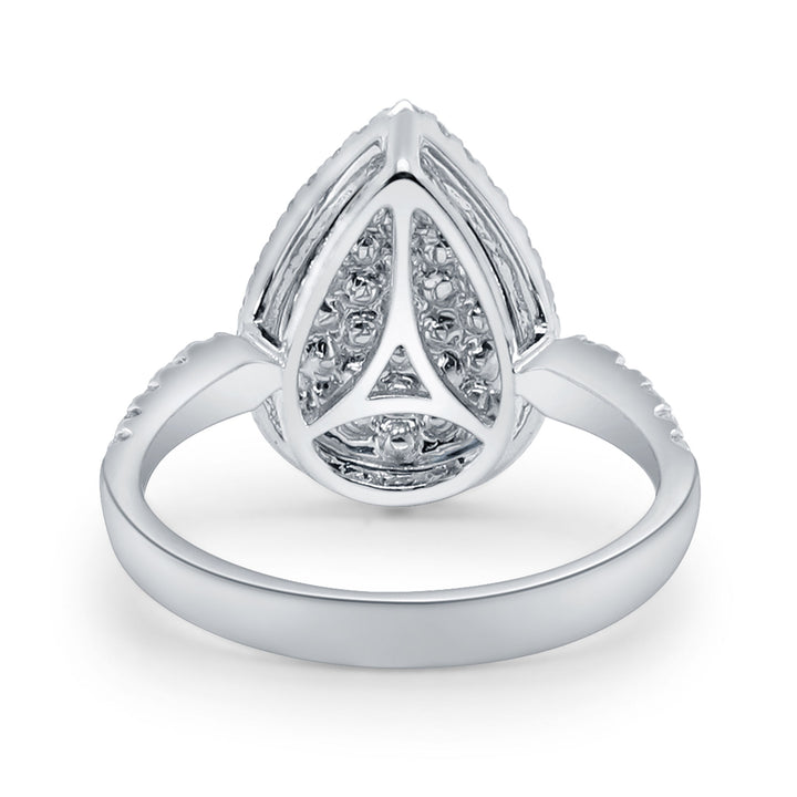 This Yellow Diamond Pear-Shaped Ring by Helzberg illuminates with breathtaking brilliance. Crafted in 14K white gold, it showcases a pear-shaped cluster of 27 brilliant cut yellow diamonds accented by 39 brilliant cut white diamonds, making a bold and expertly crafted statement piece.