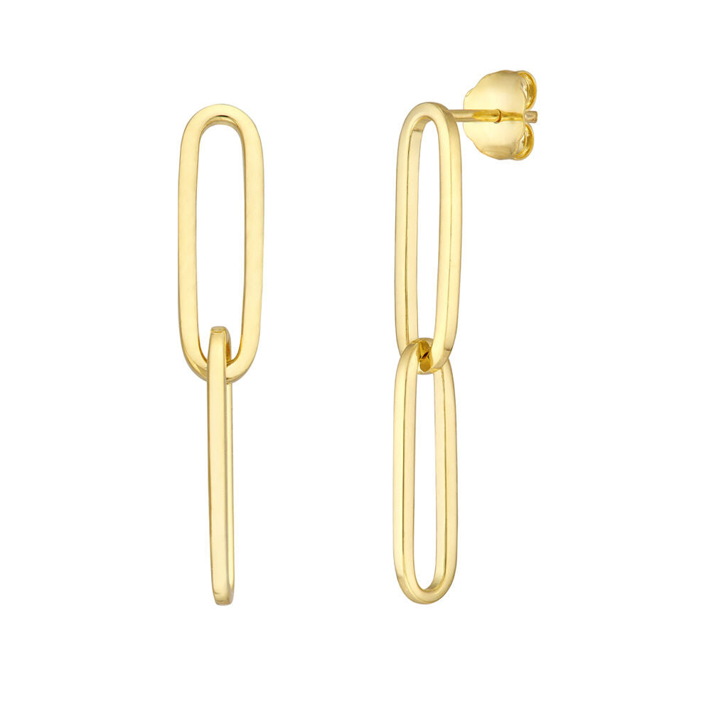 Made in 14K yellow gold with polished paperclip links. Earrings measure approximately [insert length]. Secured with hook or lever backs.
