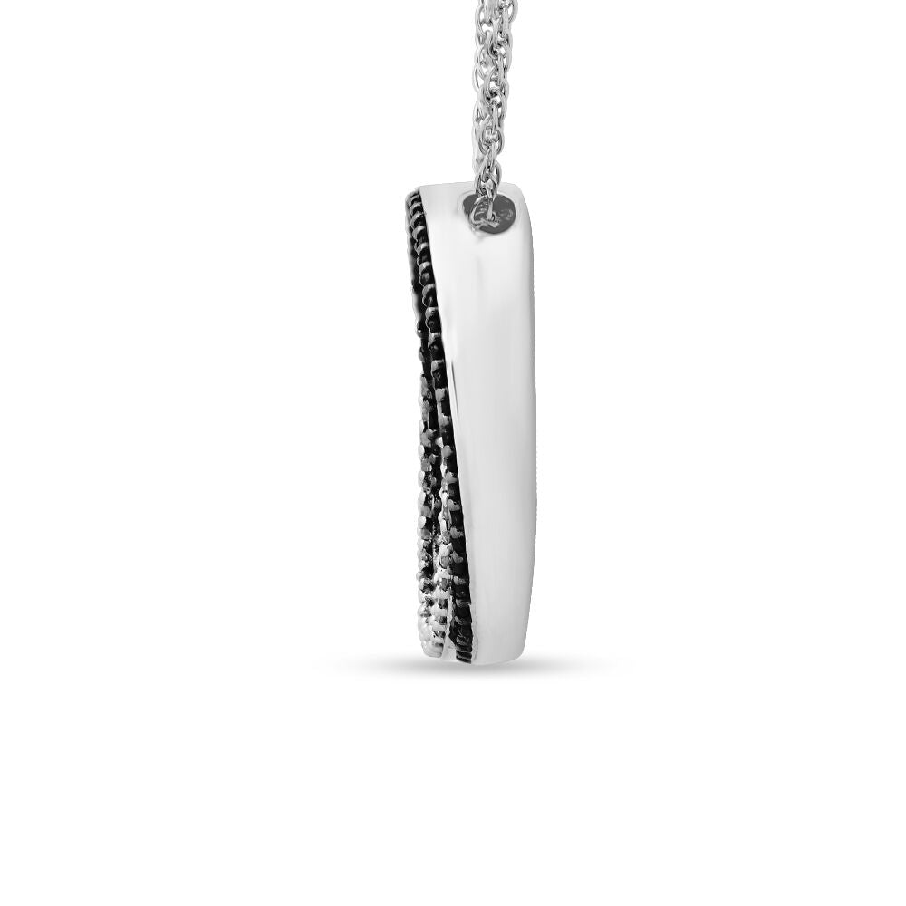 Crafted in sterling silver with 40 single cut black diamonds and 40 single cut white diamonds totaling approximately 1/5 carat. Pendant size approximately [insert size]. Includes chain and clasp.