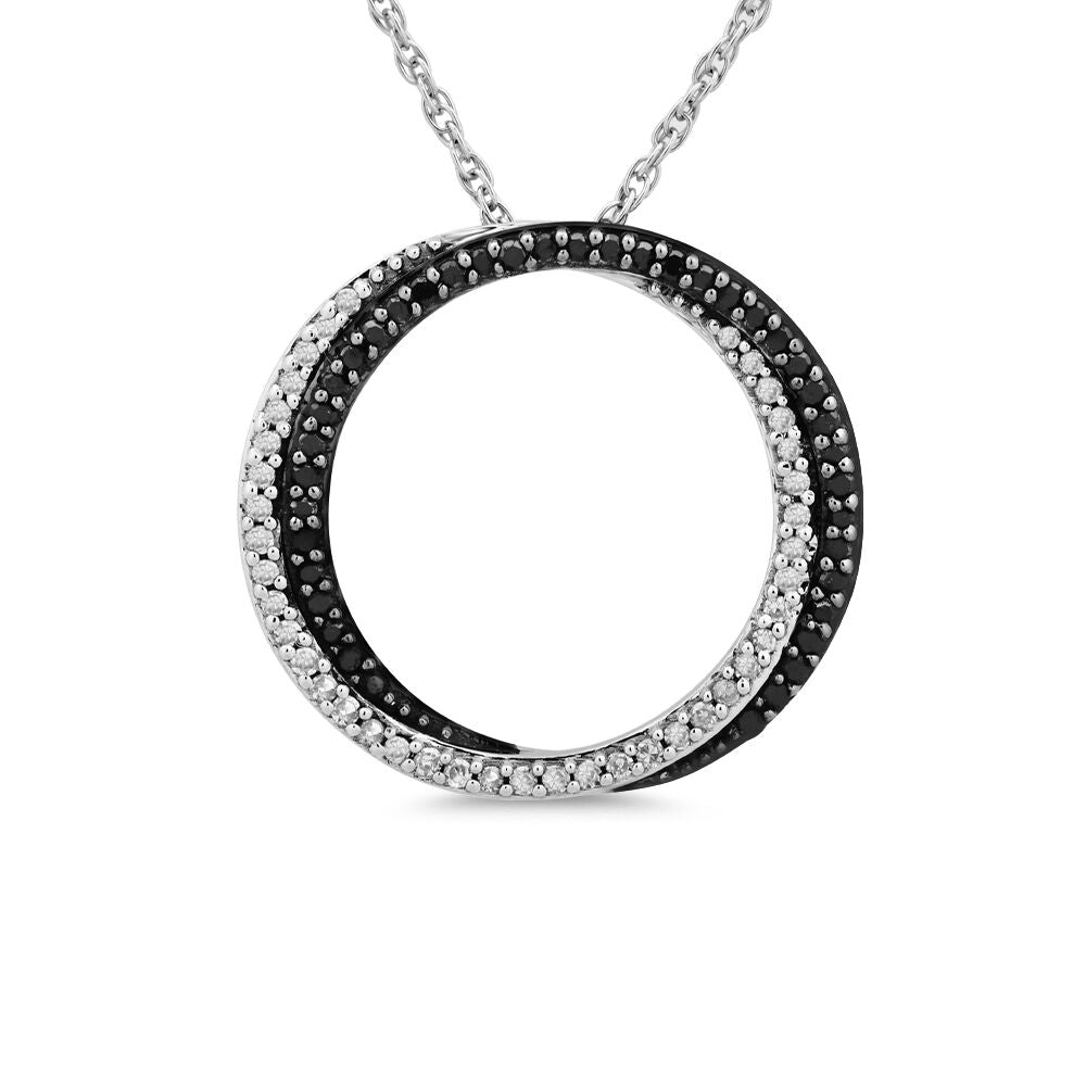 Black & White Diamond Circle Twist Pendant in Sterling Silver (1/5 ct. tw.)