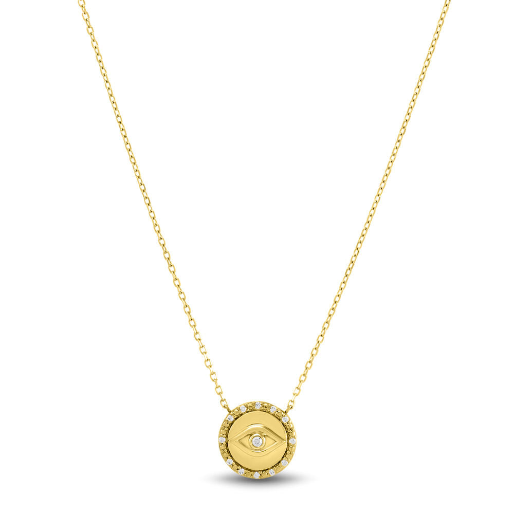 Diamond Accent Evil Eye Necklace in 14K Yellow Gold