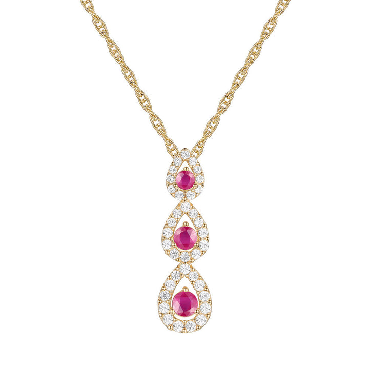 Ruby and Diamond Drop Pendant in 10K Yellow Gold (1/4 ct. tw.)