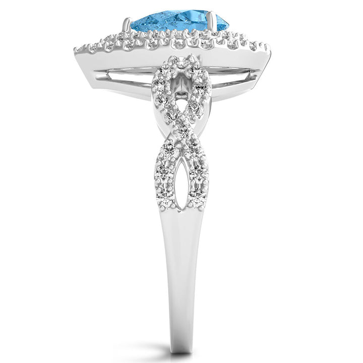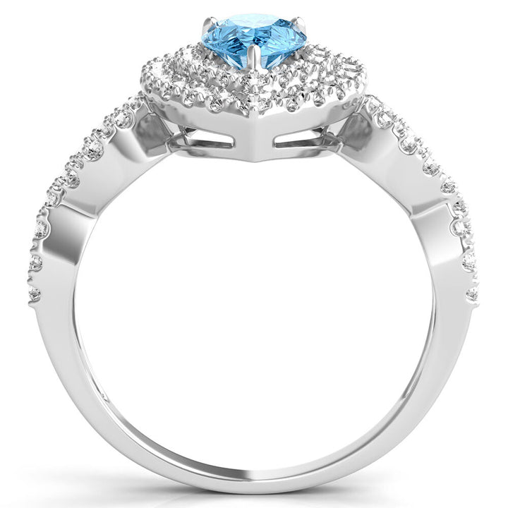 This Blue Topaz Ring with Lab Created White Sapphires by Helzberg delights with a pear-shaped blue topaz centerpiece encircled by a dazzling double halo of lab-created white sapphires. Set in sterling silver, this ring combines vivid color with radiant sparkle, celebrating December’s traditional birthstone and making an exquisite gift for the holiday season or any special moment.
