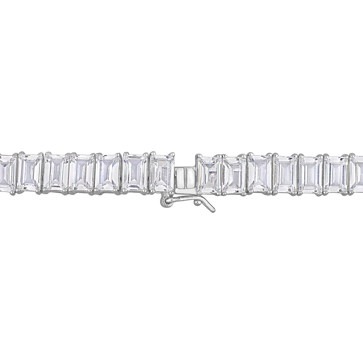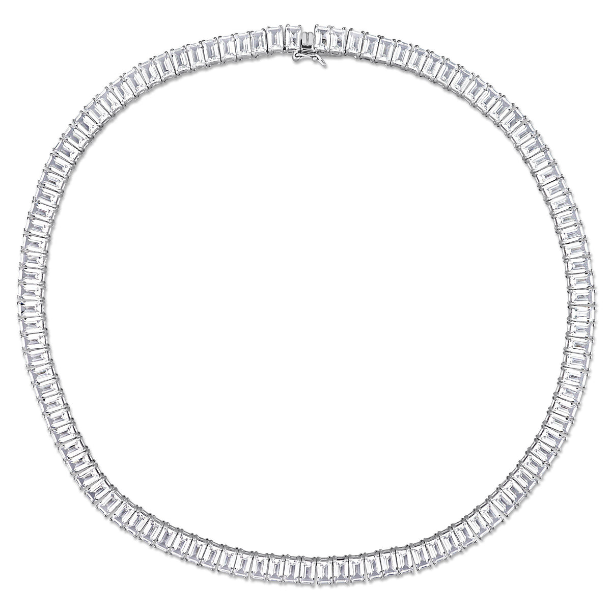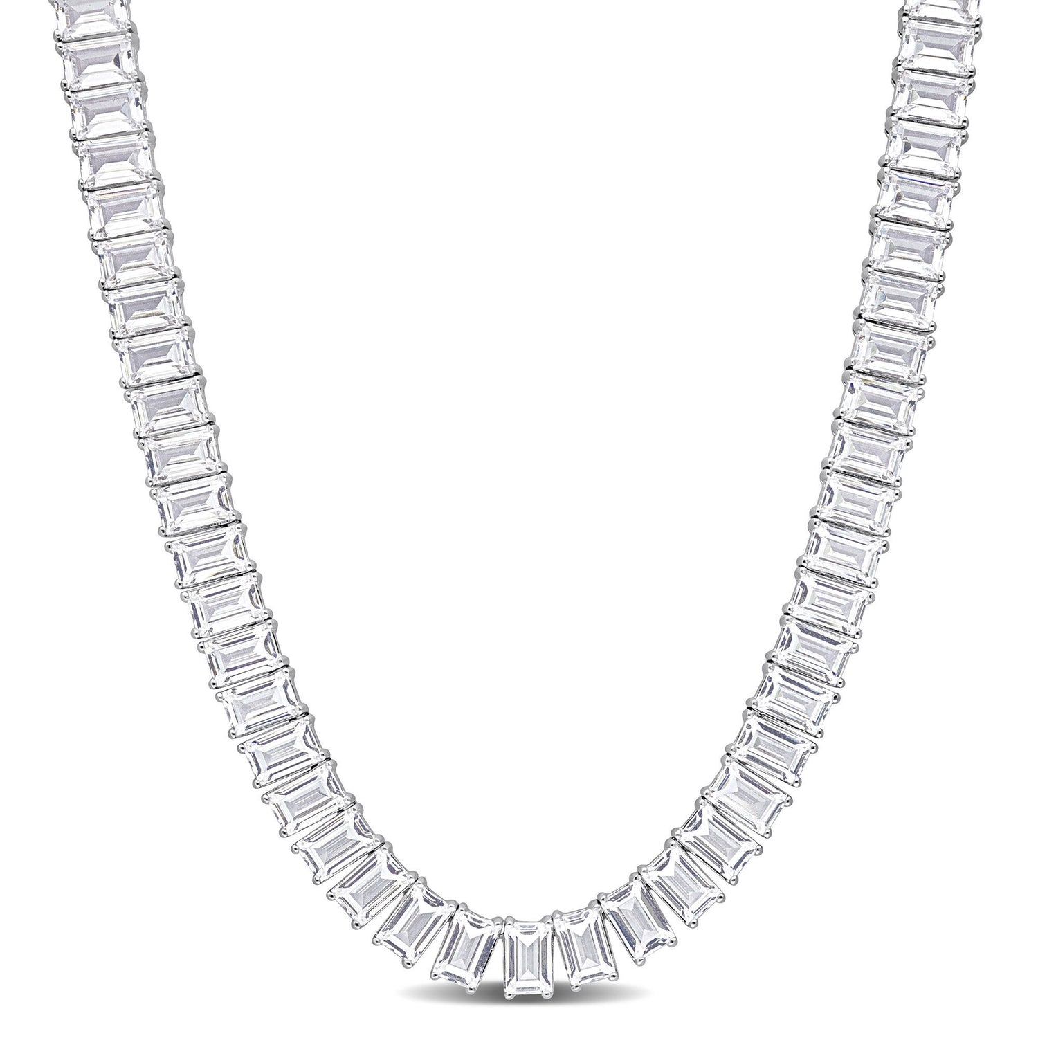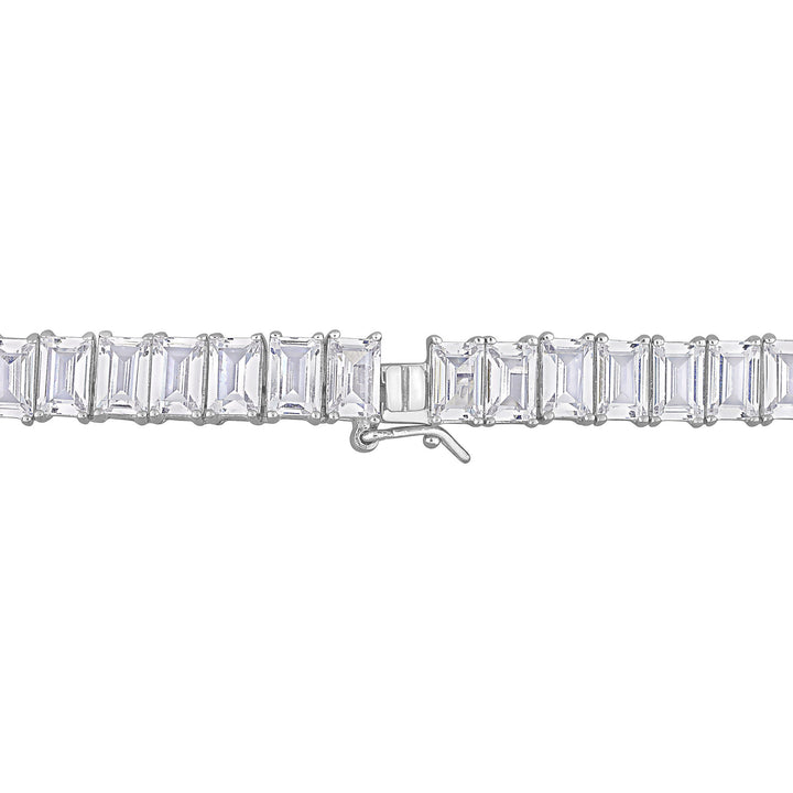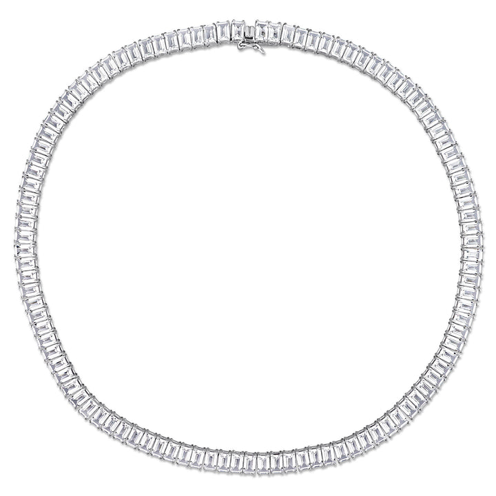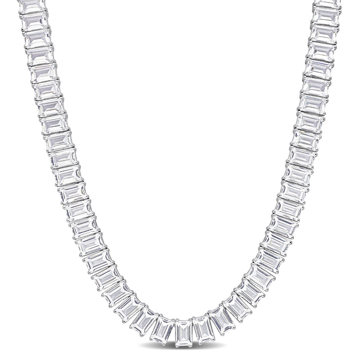 Made in sterling silver with 105 baguette-shaped lab created white sapphires. Polished finish; necklace length not specified.