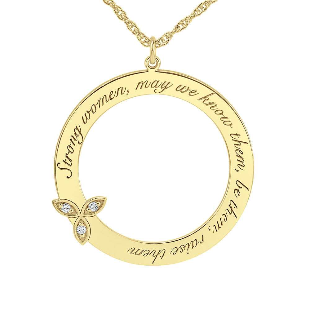 This Diamond Accent Personalized Circle Pendant by Helzberg spreads positivity and motivation. Crafted in 10K yellow gold, the engraved circle features a sparkling diamond accent, creating a thoughtful gift that inspires and delights.