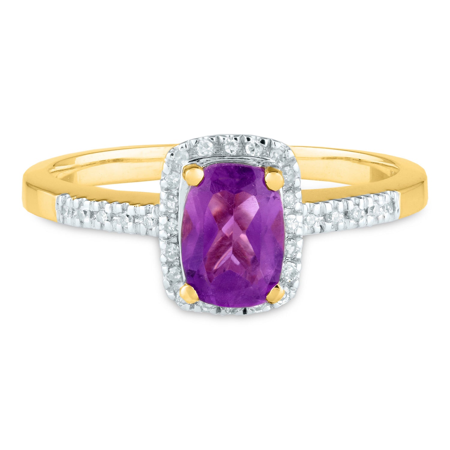 Amethyst and Diamond Ring in 10K Yellow Gold (1/10 ct. tw.)