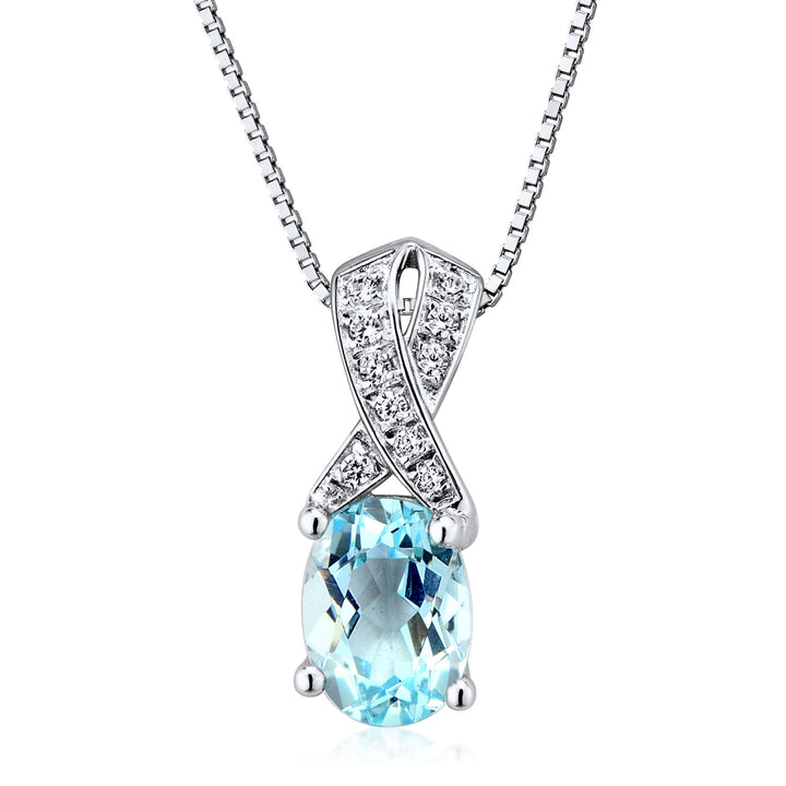 Aquamarine and Diamond Accent Pendant in 10K White Gold