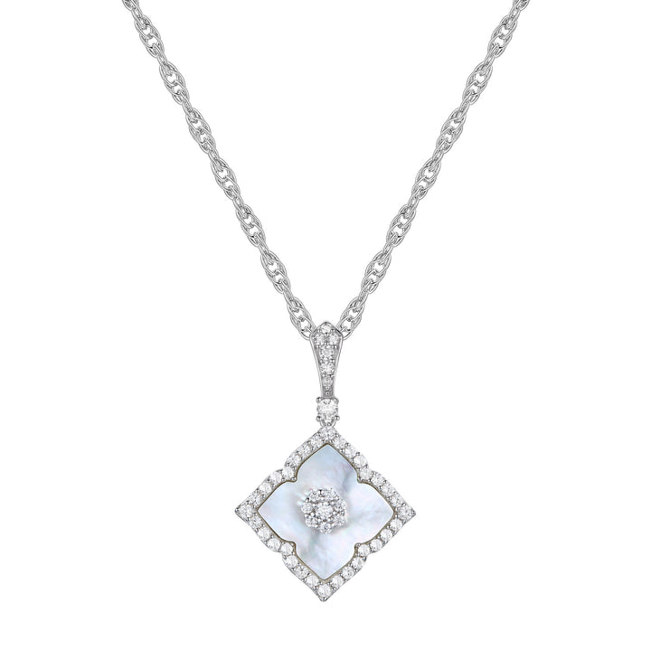 Mother of Pearl and White Sapphire Pendant in Sterling Silver