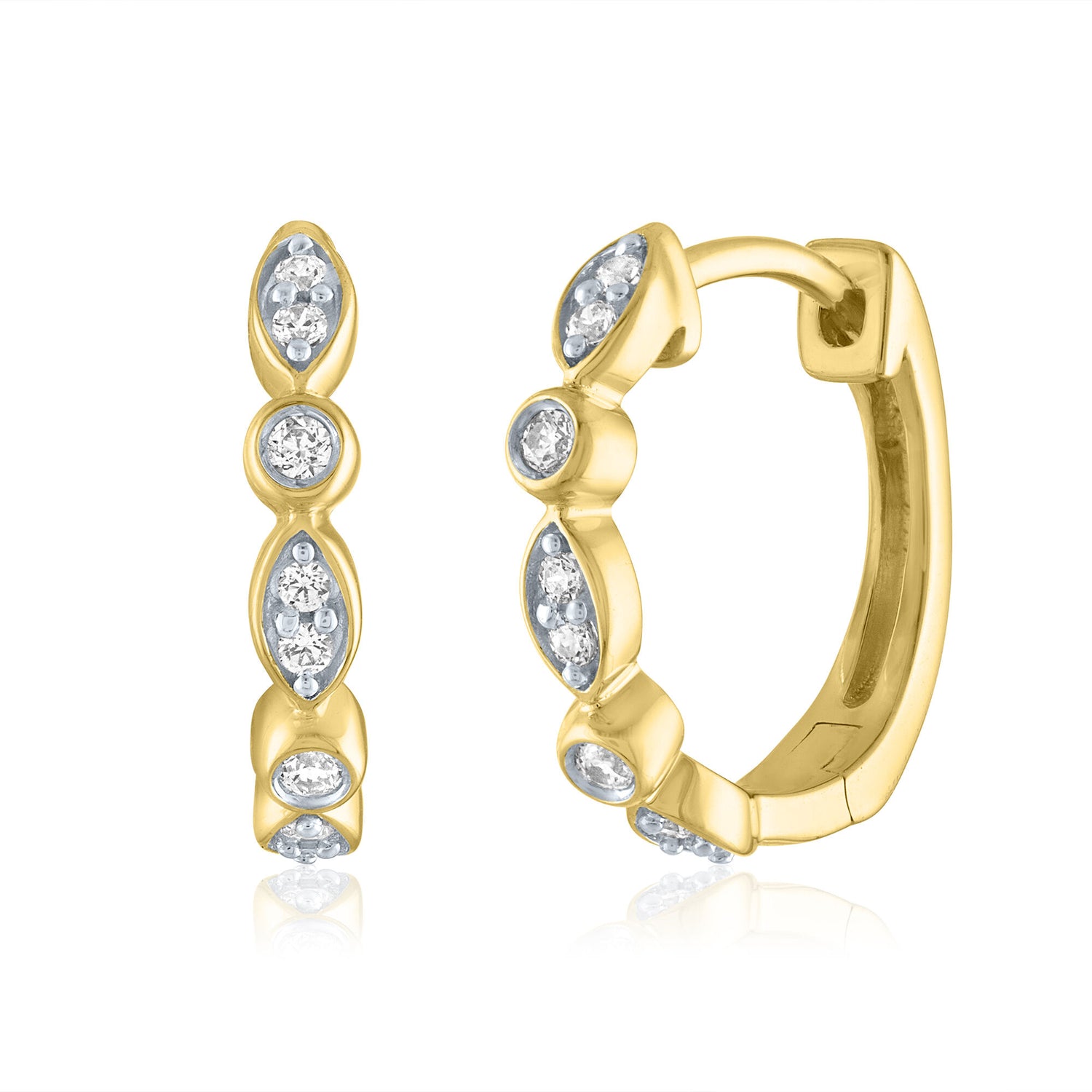 These Diamond Huggie Hoop Earrings by Helzberg are the epitome of elegant style. Crafted in 10K yellow gold, each petite earring features eight round diamonds that add subtle brilliance, making them an ideal choice for everyday glamour.