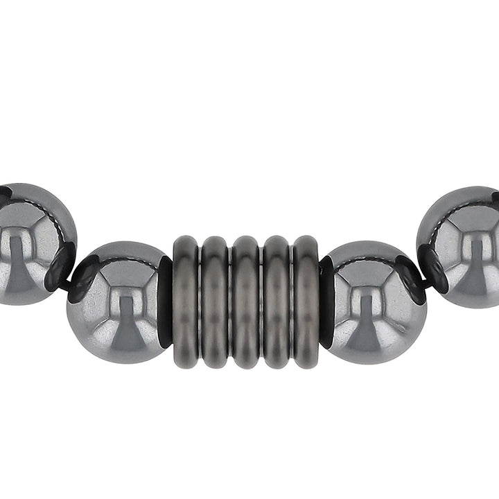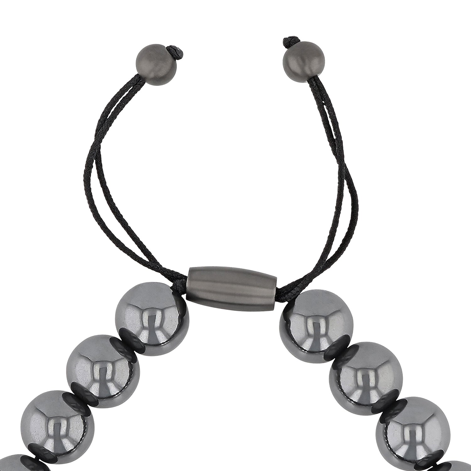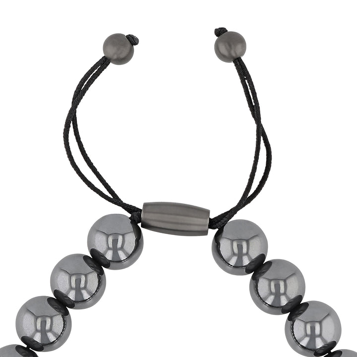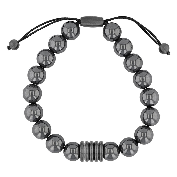 Made from gray stainless steel with eighteen 10mm hematite beads. Adjustable bolo clasp, fits 8.5 to 10.5 inches.