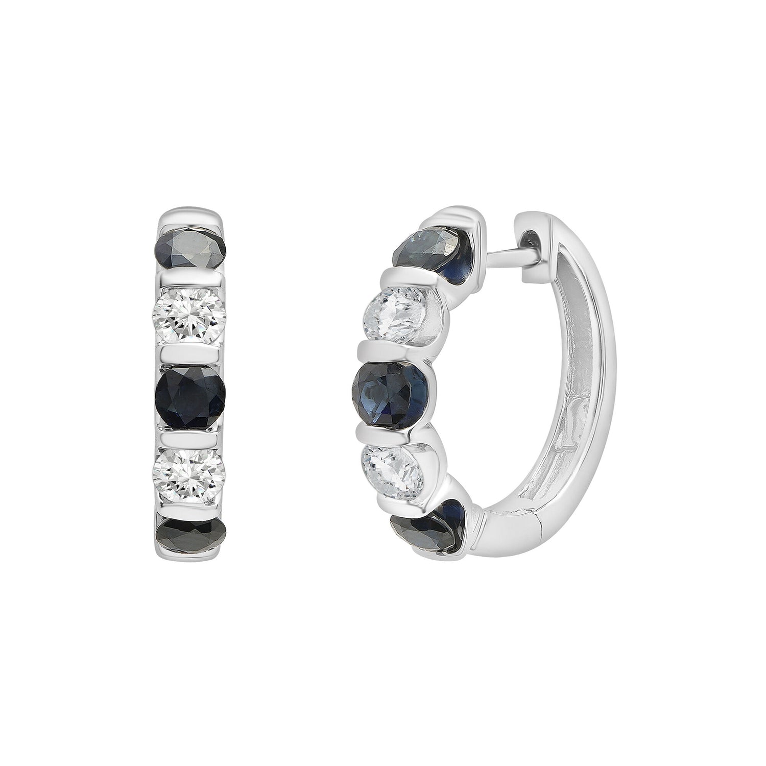 Blue and White Sapphire Hoop Earrings in Sterling Silver