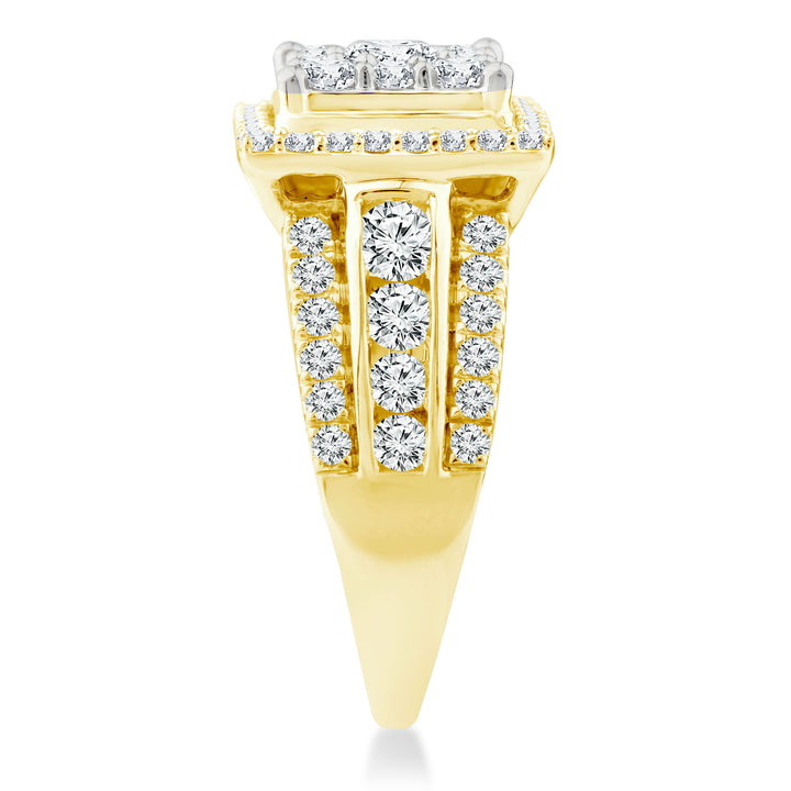 Made in 10K gold. Set with a diamond composite center and multiple round brilliant cut diamonds totaling 2 carats total weight.