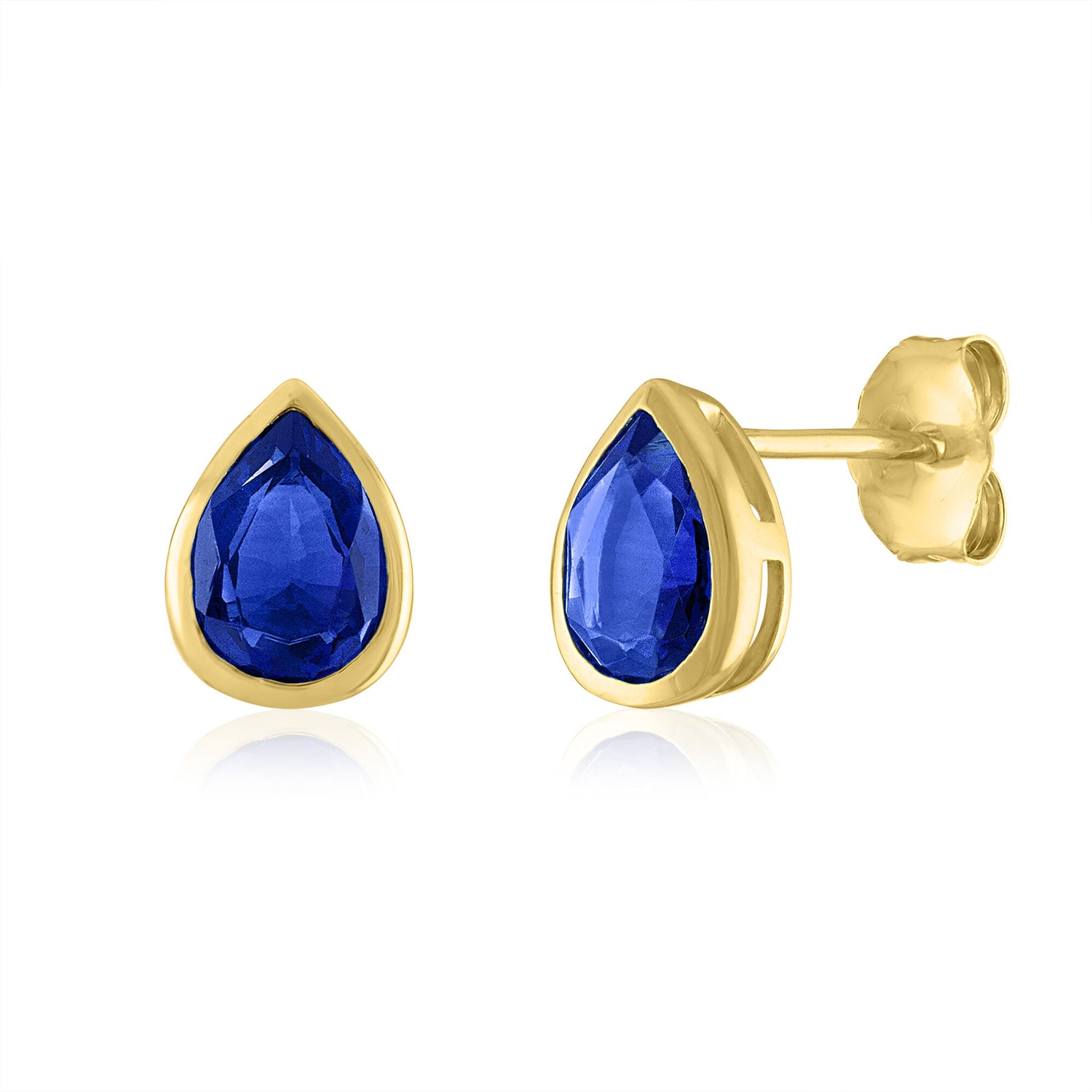 These Lab-Created Blue Sapphire Birthstone Stud Earrings in 10K Yellow Gold by Helzberg are a thoughtful September birthstone gift. Pear-shaped and sparkling, these earrings symbolize luck, happiness, and love and are designed for daily elegance.