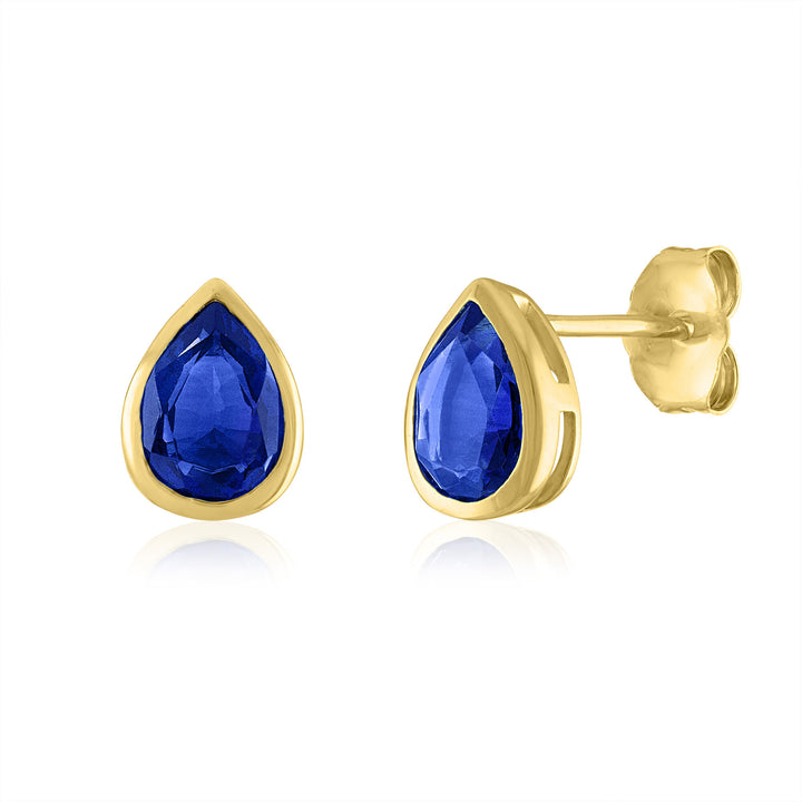 Made in 10K yellow gold with pear-shaped lab-created blue sapphires. Includes secure stud backs.