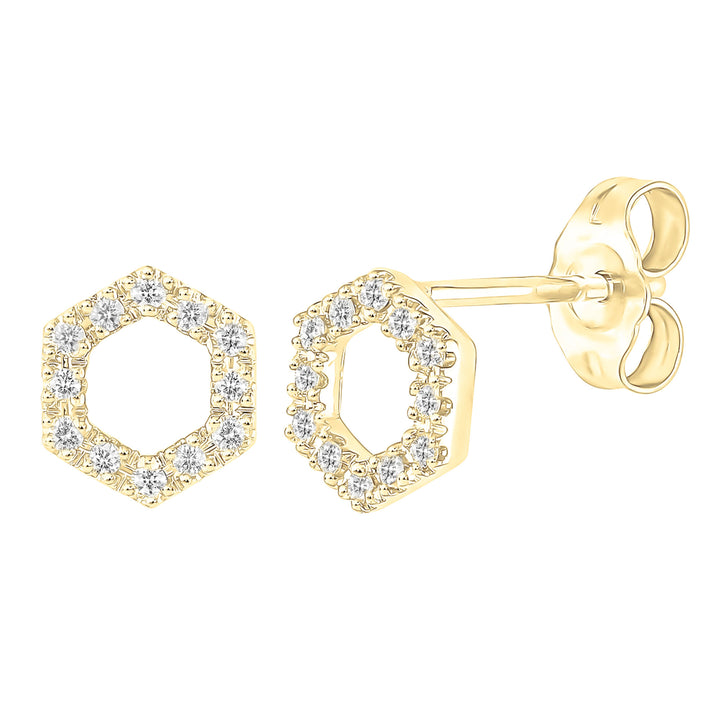Diamond Hexagon Stud Earrings in 10K Yellow Gold (1/8 ct. tw.)