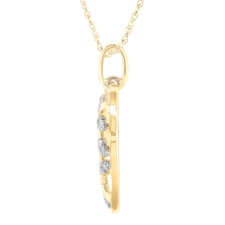 Made in 10K yellow gold with 19 round single cut diamonds totaling approximately 1/8 carat total weight. Pendant includes secure bail and polished finish.