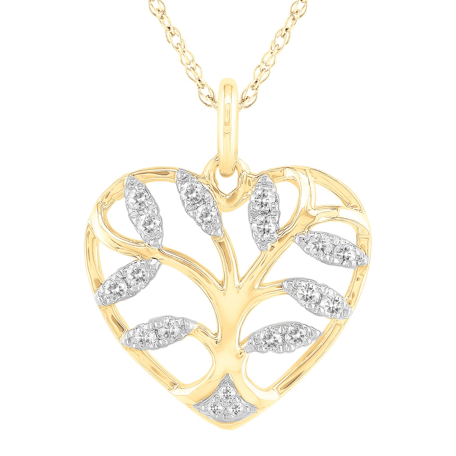 This Heart Pendant with Diamonds in 10K Yellow Gold by Helzberg is a sparkling and pretty keepsake. Featuring 19 single cut diamonds set in a beautiful leafy heart design, this pendant is a heartfelt gift or personal treasure radiating warmth and elegance.