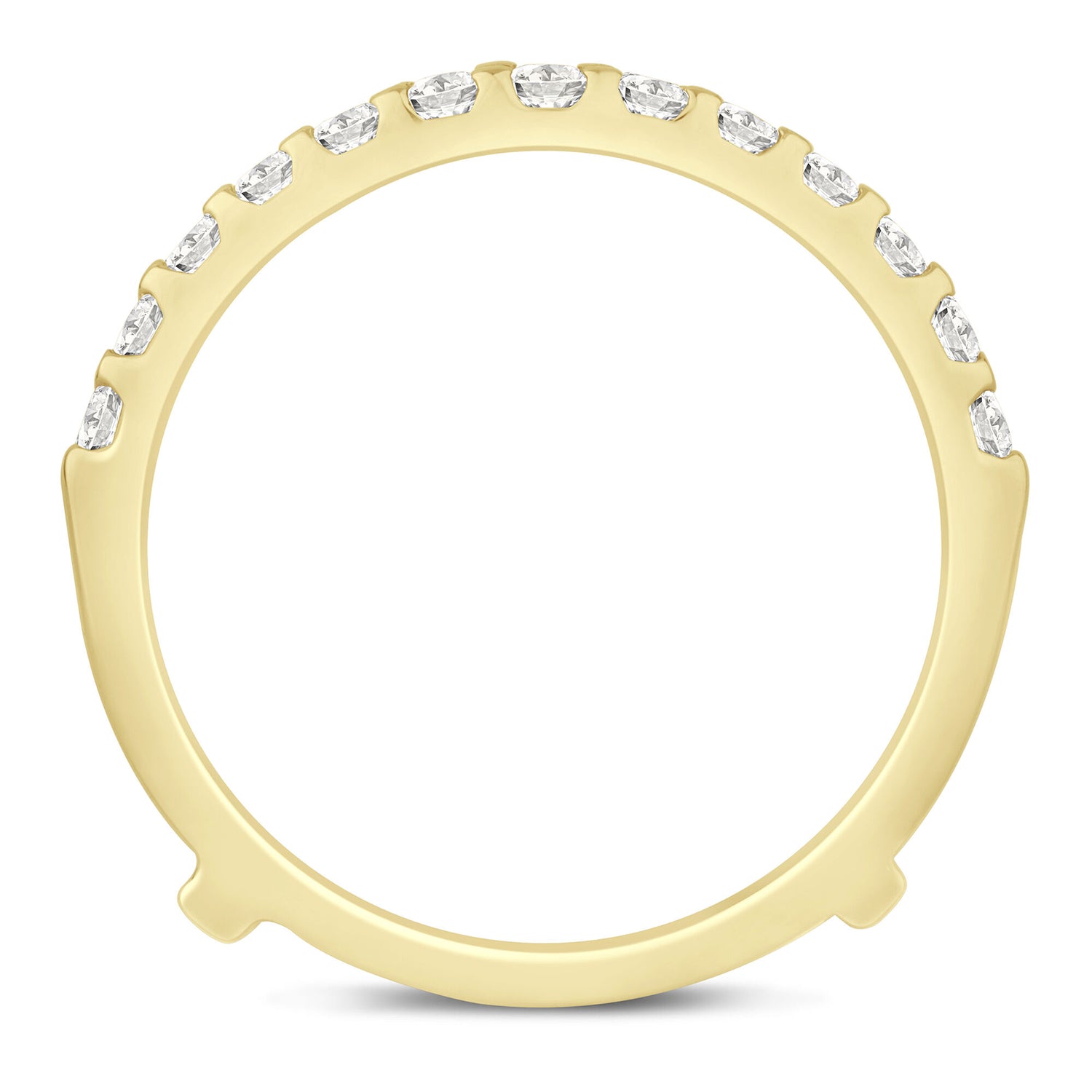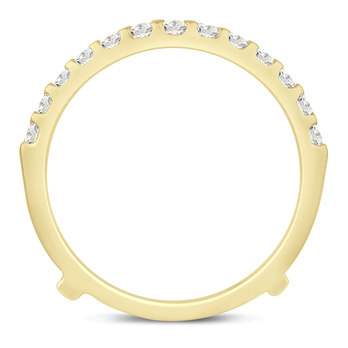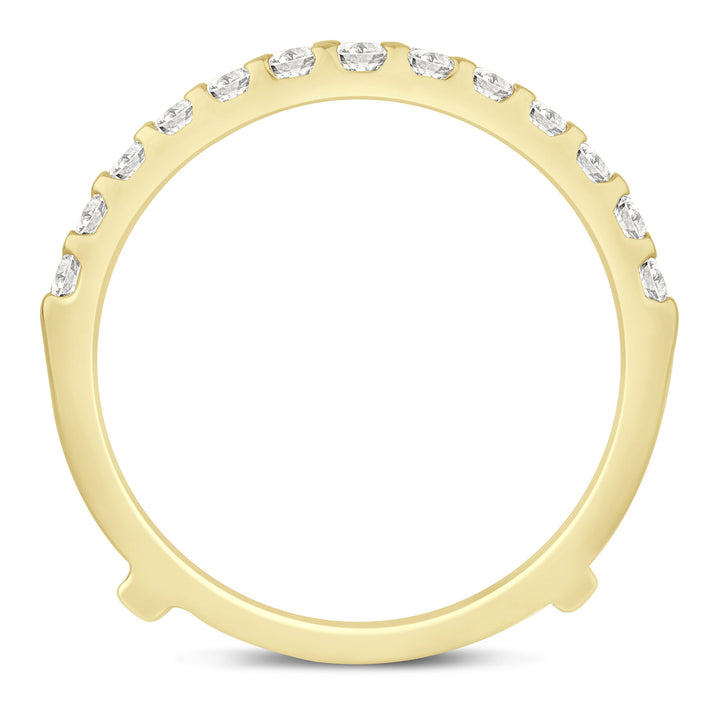 Crafted in 14K yellow gold featuring 26 round brilliant cut diamonds totaling approximately 1/3 carat total weight. Chevron insert designed for seamless integration with engagement rings.