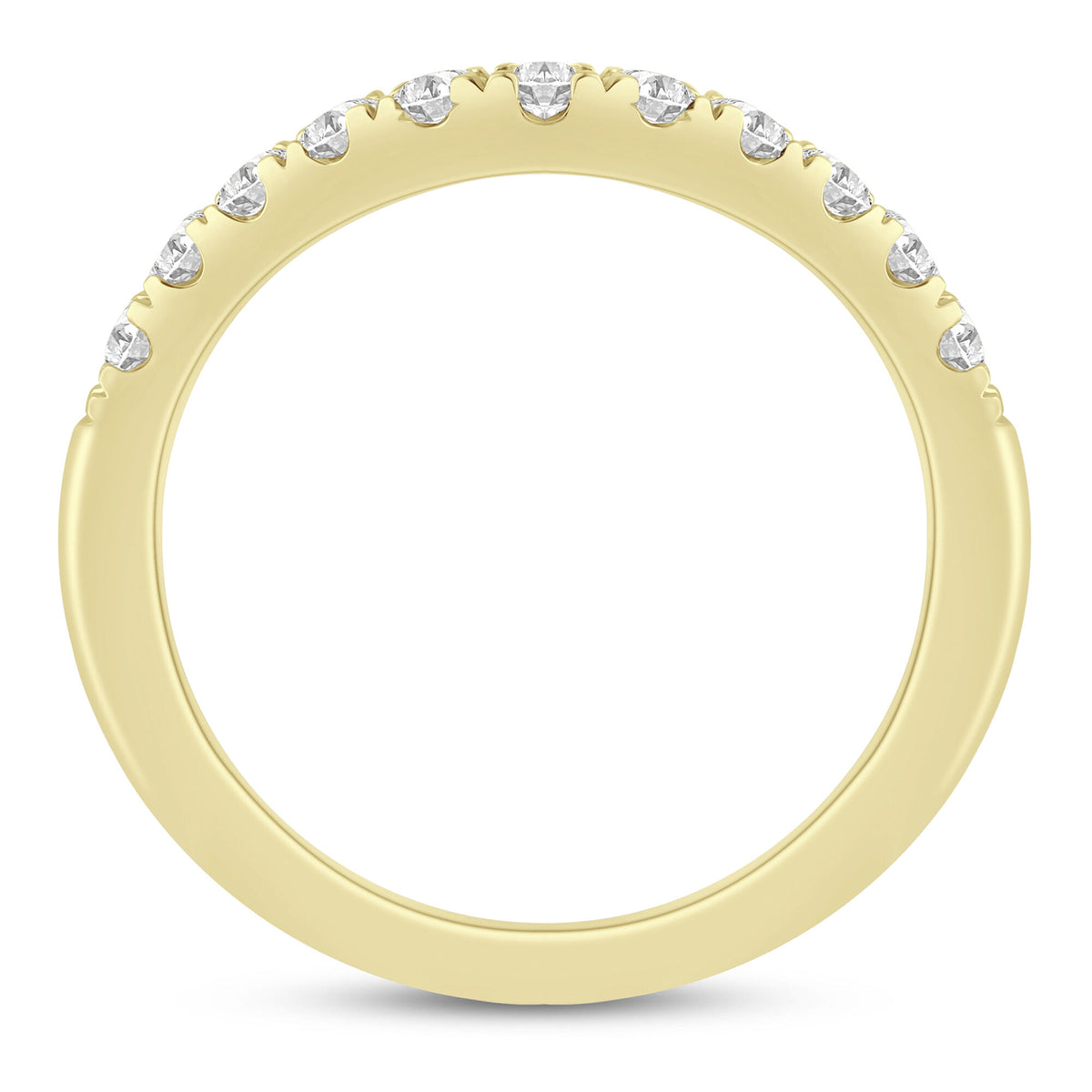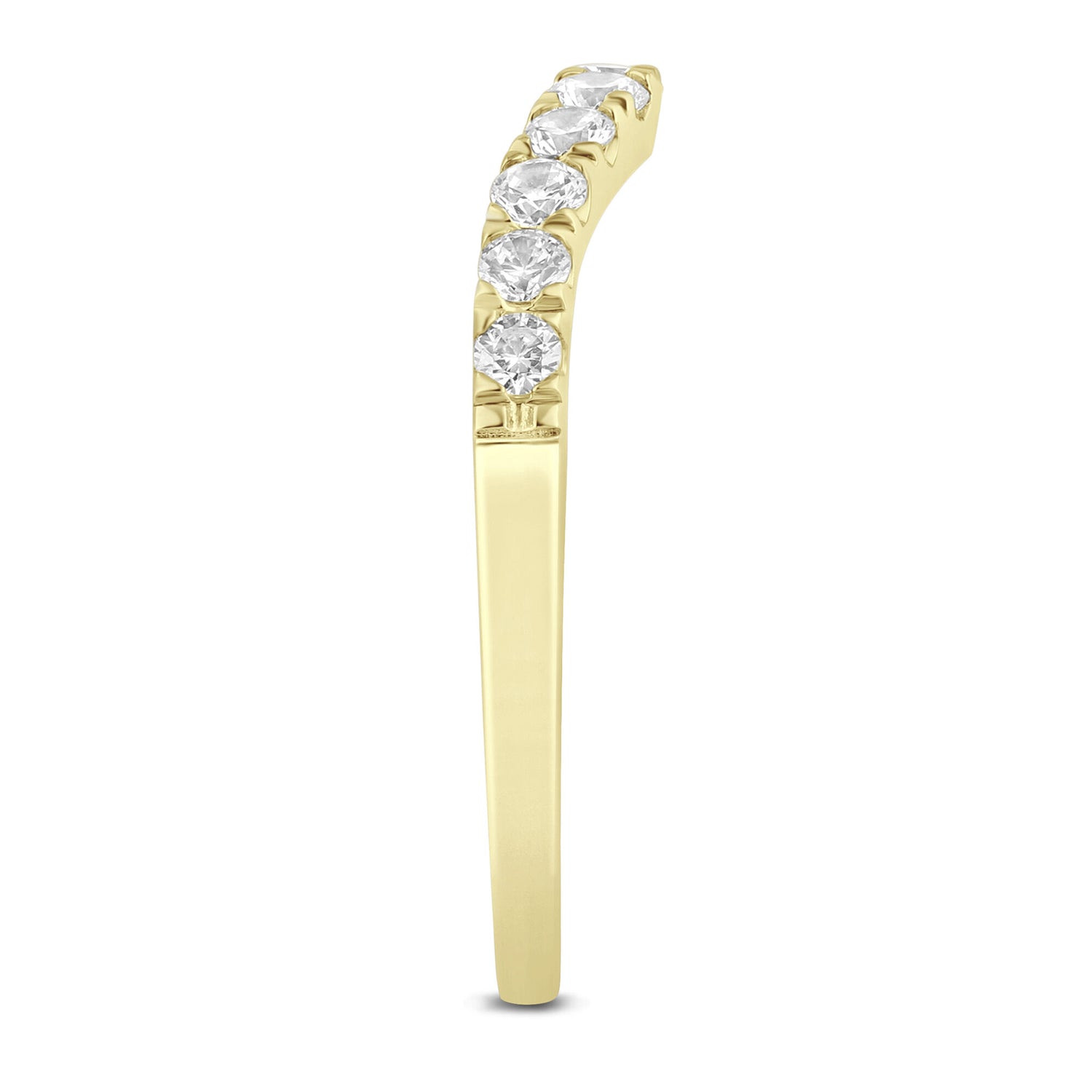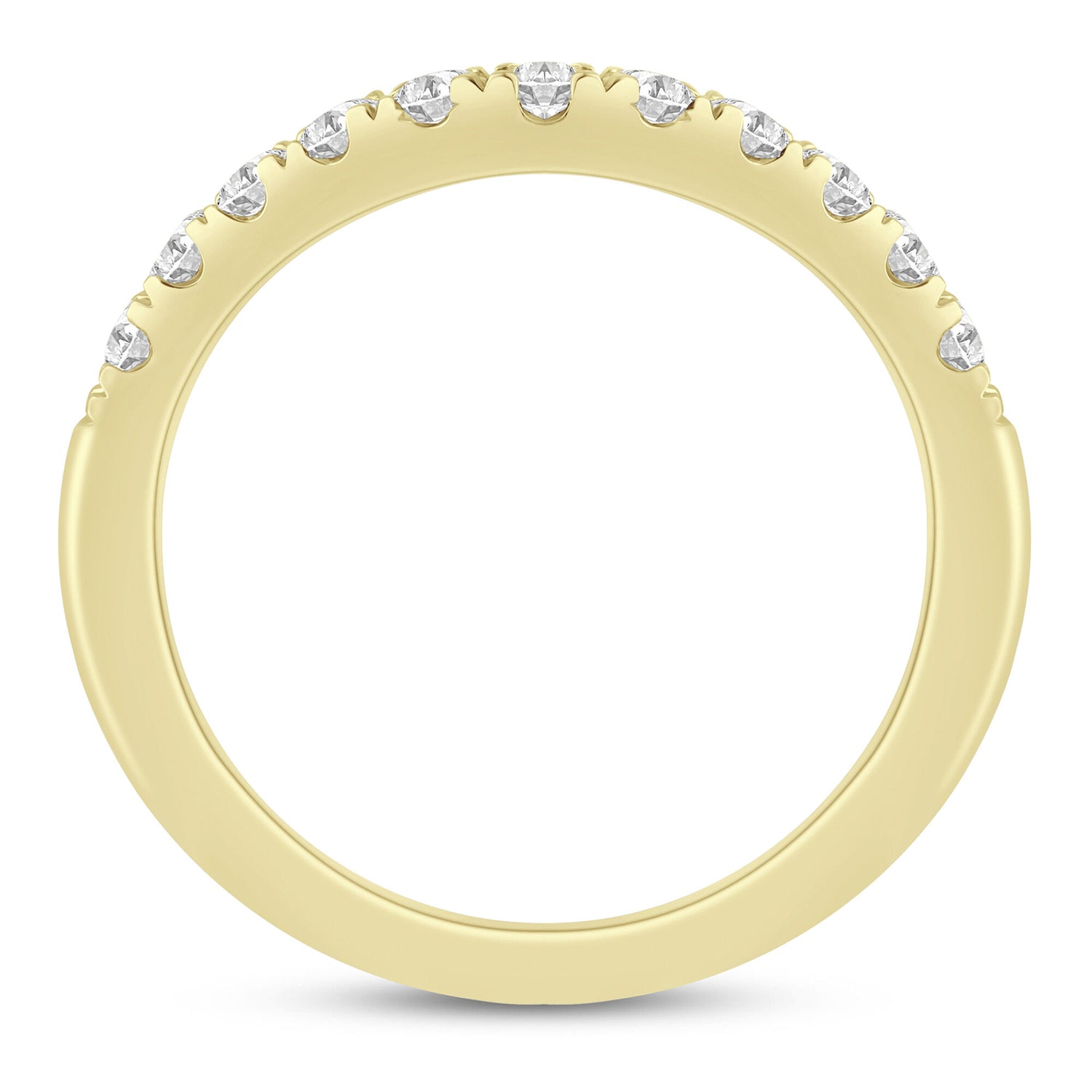 Made in classic 14K yellow gold with 11 round brilliant cut diamonds totaling approximately 1/2 carat total weight. Contour design ensures comfort and lasting brilliance.