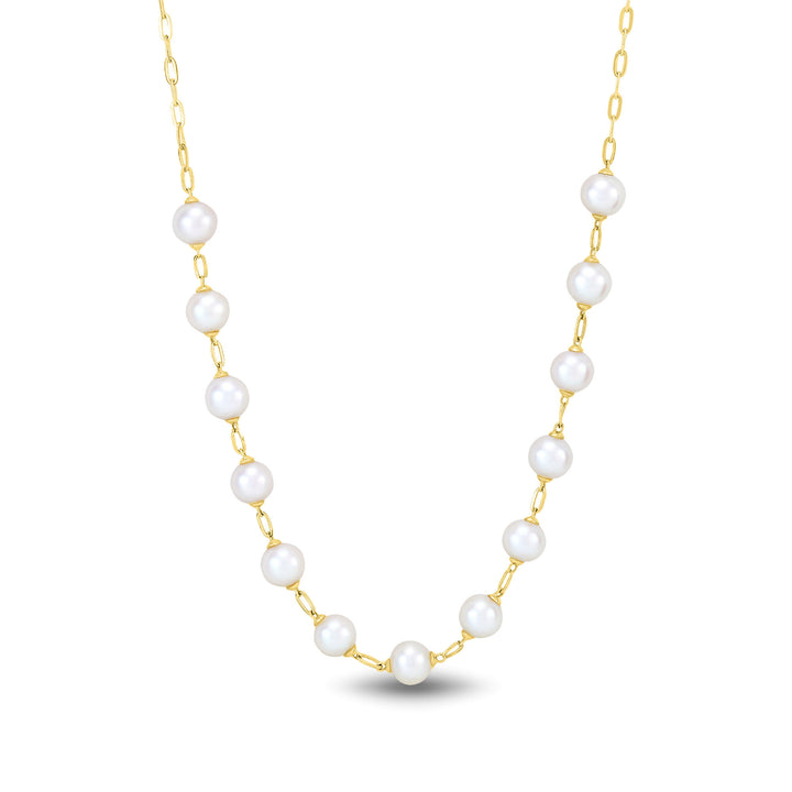 Made in 10K yellow gold with cultured freshwater pearls delicately integrated along a paperclip-style chain. Necklace length and clasp designed for comfortable, secure wear.