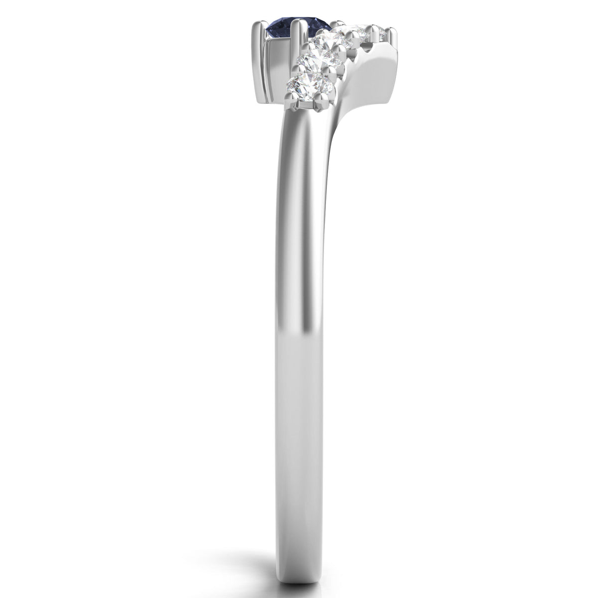 This Lab Grown Diamond and Lab-Created Blue Sapphire Chevron Ring by Helzberg exudes modern glamour. Featuring one round lab-created blue sapphire nestled within a chevron bar of nine lab grown diamonds, this sterling silver ring shines with premier luster. It pairs perfectly with coordinating earrings and necklace for elevated style.
