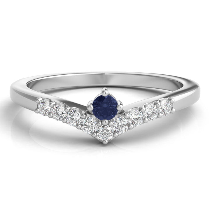 Lab Grown Diamond and Lab-Created Blue Sapphire Chevron Ring in Sterling Silver (1/7 ct. tw.)