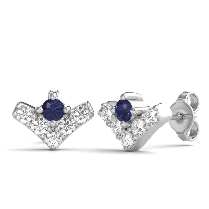 Handcrafted in sterling silver. Each earring features one round lab-created blue sapphire and five lab grown diamonds totaling 1/8 carat tw. Secure posts.