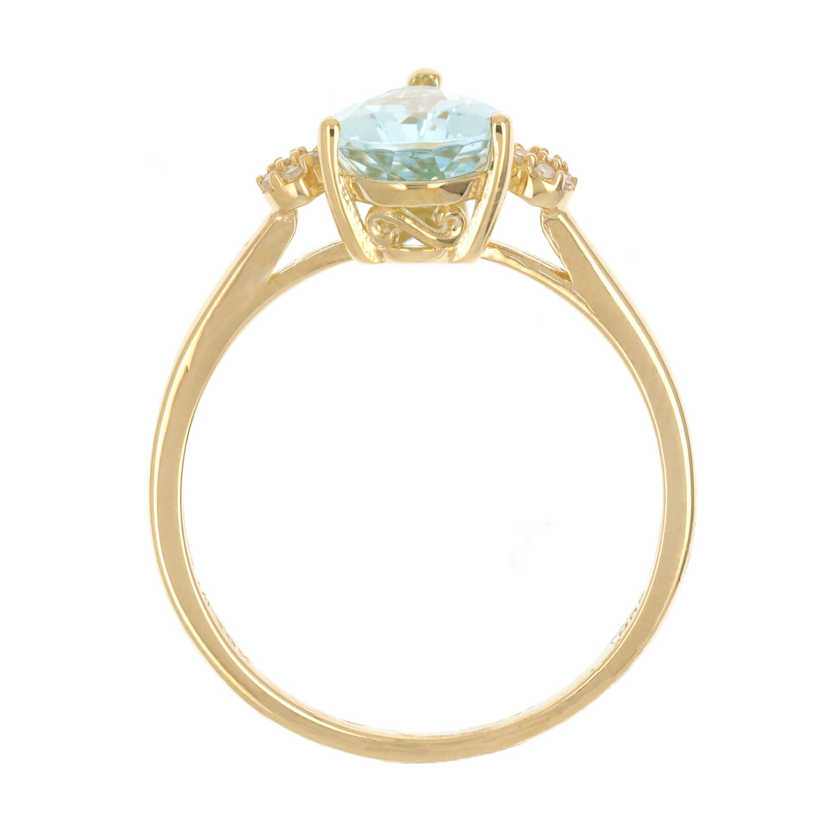 This Lab-Created Aquamarine and Diamond Accent Ring by Helzberg mesmerizes with serene color. A pear-shaped aquamarine center stone is surrounded by fourteen round single cut diamond accents, set in 10K yellow gold. This refined piece honors March’s birthstone with luminous elegance and expert craftsmanship.