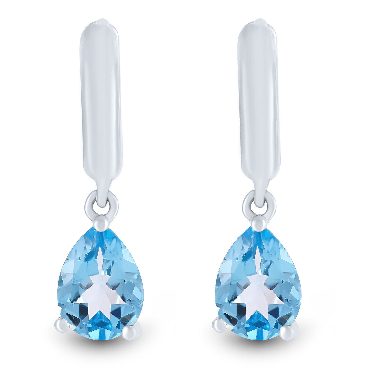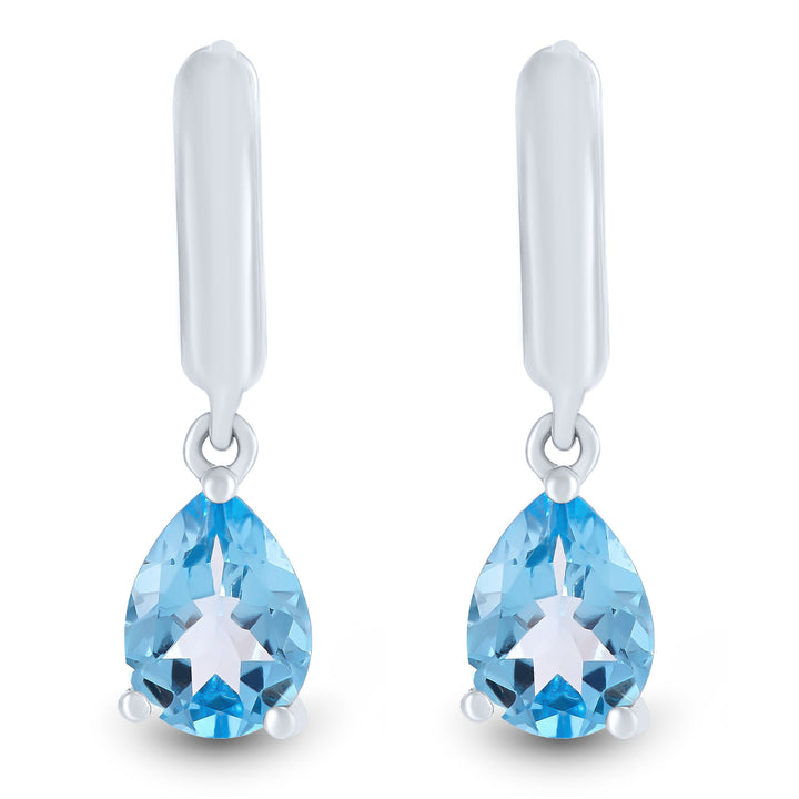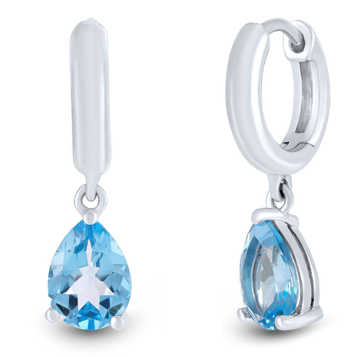 Pear-Shaped Blue Topaz Dangle Hoop Earrings in Sterling Silver