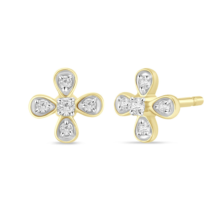 Handcrafted in 10K yellow gold. Total diamond weight 1/10 carat tw. Ten round brilliant cut diamonds. Secure friction back posts.