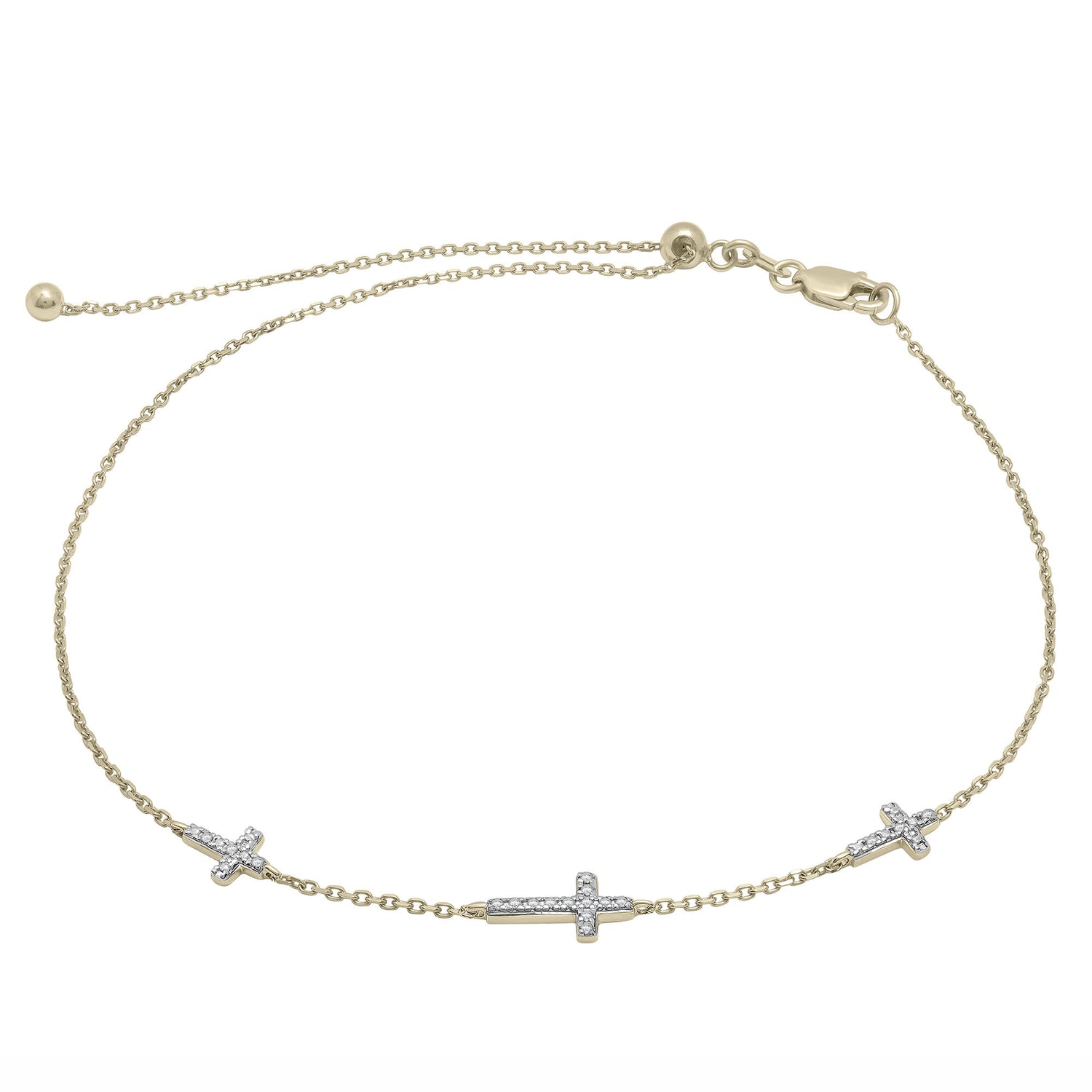 Diamond Accent Three Cross Bracelet in 10K Yellow Gold